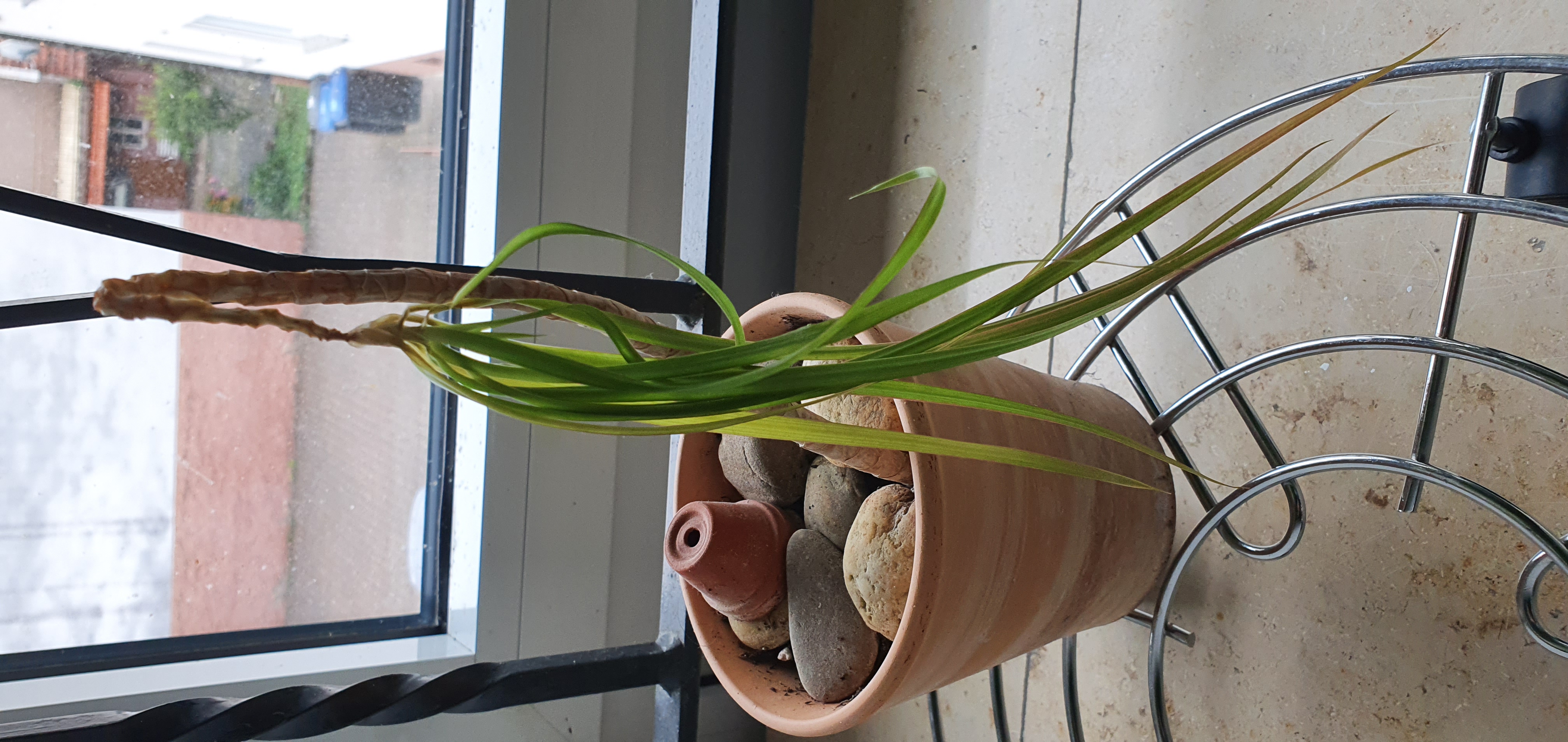 Die kleinere Drachenpalme(?) von meinen Eltern geht gerade so langsam ein. Diese stand ca. 10 Jahre in deren Bad. Vor kurzem wurde die Fensterbank etwas zugestellt, wodurch sie über mehrere Wochen vermutlich zu wenig Licht bekam. Steht seit vorgestern wieder an einen helleren Standort.
