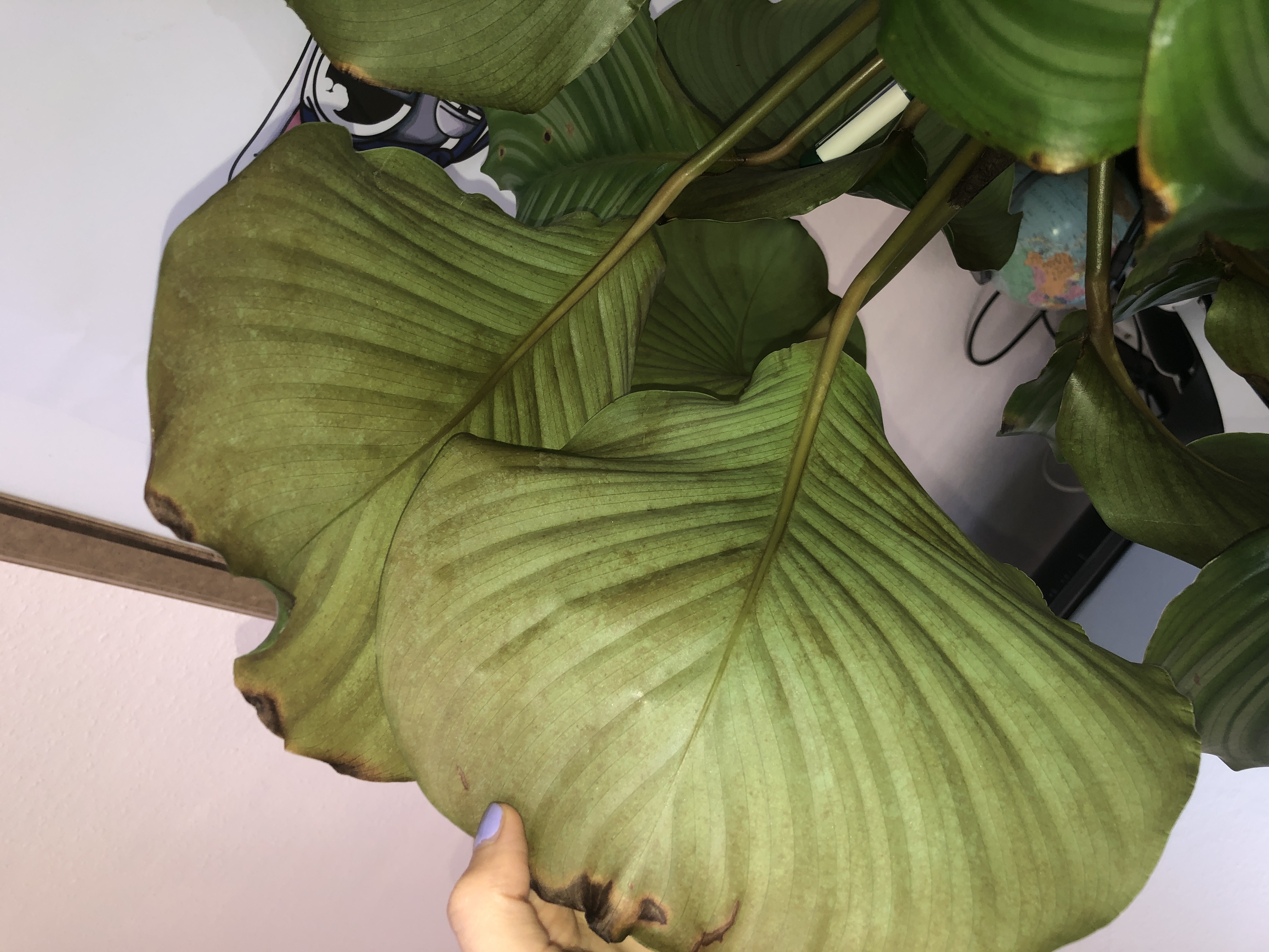meine Calathea Orbifolia kränkelt leider wieder. Sie färbt sich unter den Blättern Braun und bekommt auch braune Flecken oben auf den Blättern. Ist es vielleicht ein Pilz ? Würde mich tatsächlich sehr über Hilfe freuen, da ich große Probleme mit der Pflanze habe und sie vor einigen Monaten schon mal komplett runter kürzen musste. Jetzt war alles eine Zeit lang super und nun wieder einige Wochen immer schlimmer. An der Routine wurde nichts verändert.