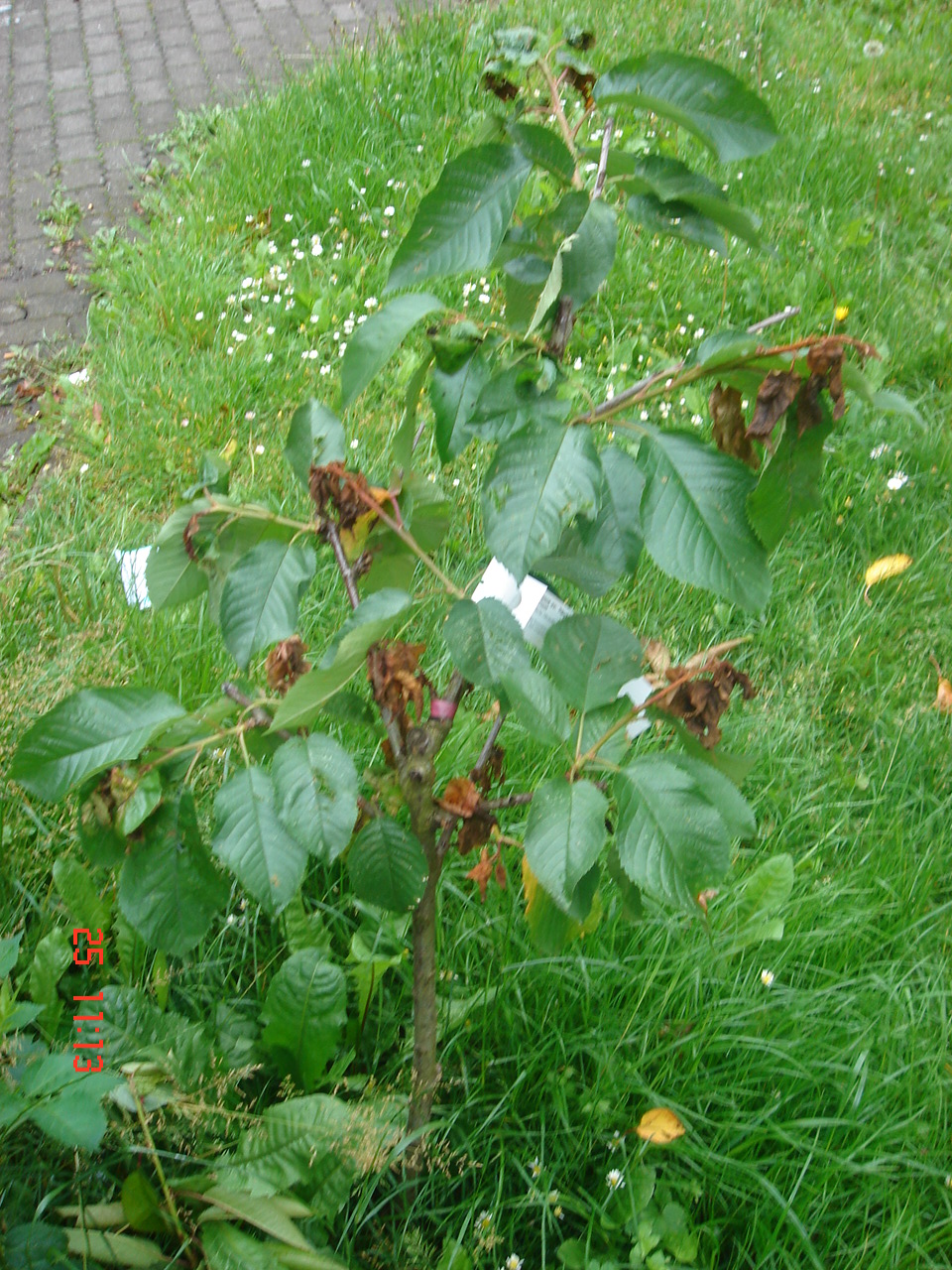ein Kirschbäumchen kleiner - gepflanzt letztes Jahr (wächst nur schwach, mit Lausschaden) (Bild