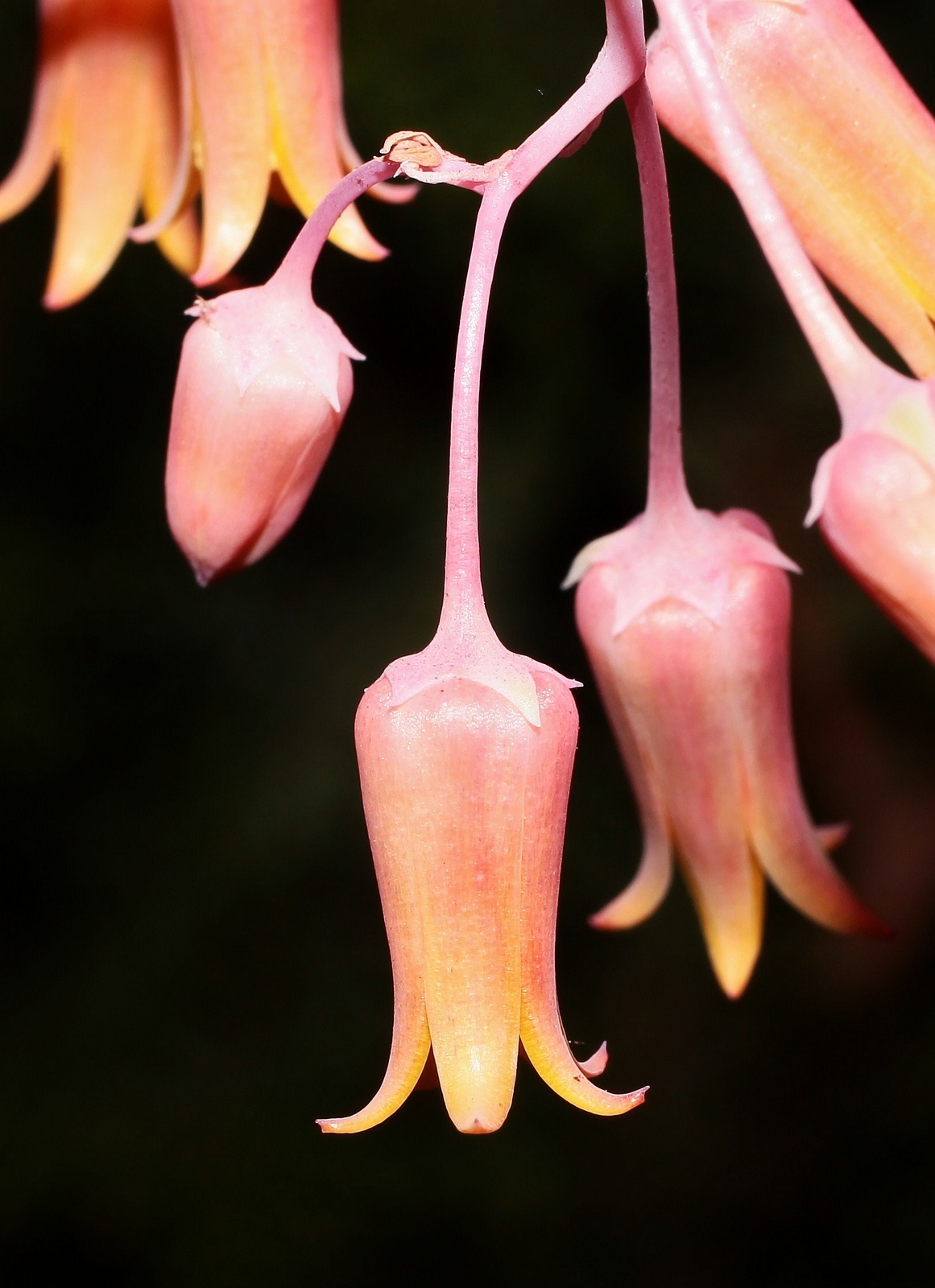 Blüte: bis 80 cm hohe Blütenstände mit sehr kleinen Blättchen; Blütenstand eine gabelig verzweigte, 4 bis 36blütige, 4 bis 20 cm lange Scheinrispe; Blüten mit 5 bis 14 mm langem Stiel; Kelchblätter klein; Blütenkrone röhrig bis krugförmig, 9 bis 14 mm lang und 6 bis 8 mm breit, rötlich, innen gelblich; Blütezeit April bis Juni.