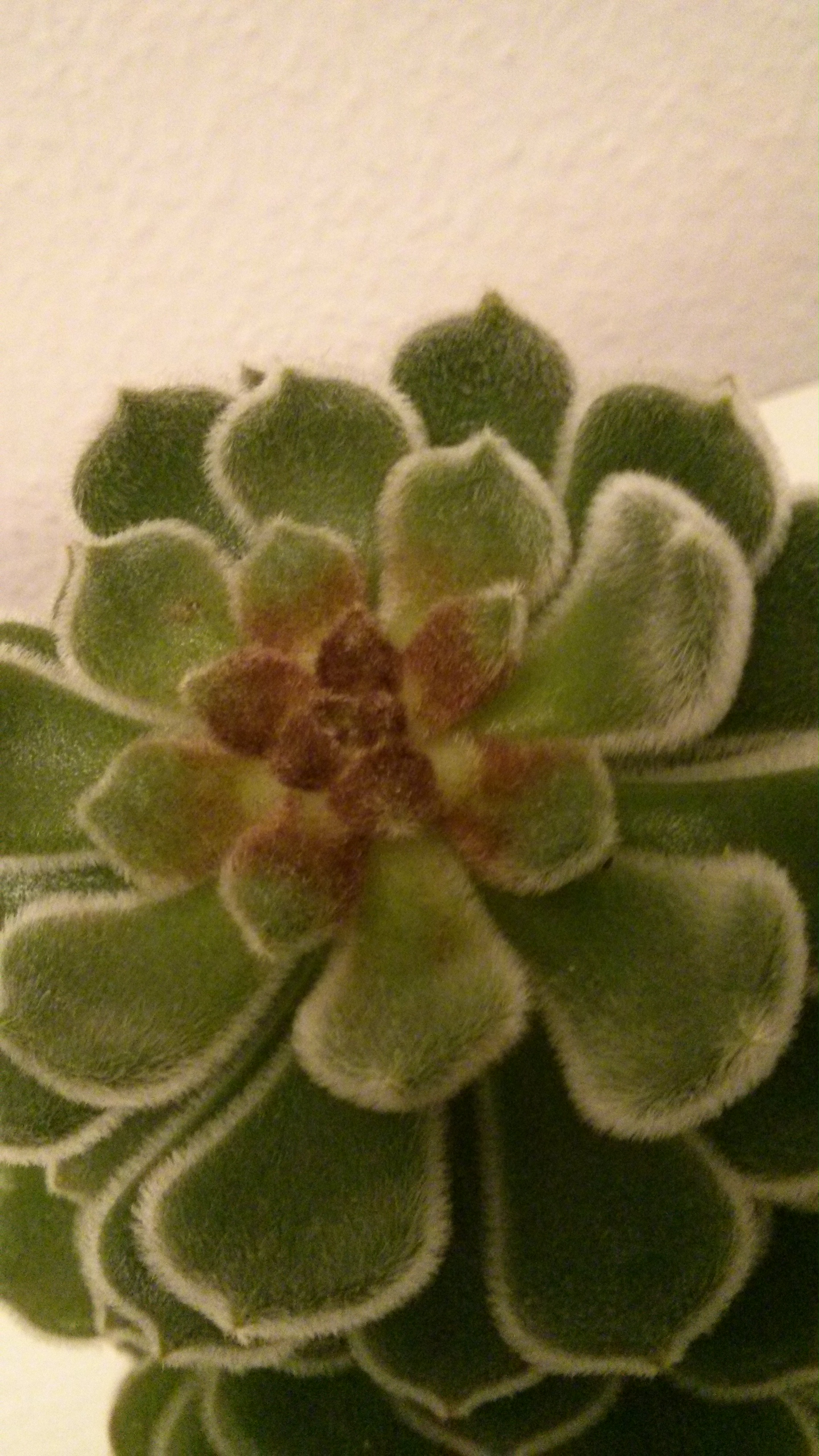 Meine Echeveria Setosa / Bombycina (ich glaube zumindest dass es eine davon ist, macht seit dem Winter einige Veränderungen durch. Alle neuen Blätter werden oben braun und teils werden die unteren gelb und fallen ab. Die Pflanze will aber wohl noch leben, denn sie bildet auch wieder neue gesunde Bläter und Kindl.
