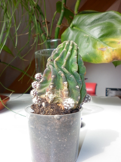 Habe einen Echinopsies- hybride der jegliche kleine Knöpfe hat. Nun war ich etwas vergesslich und habe den Hybriden im freien vergessen! Nun ist er so ganz farbig unten durch !