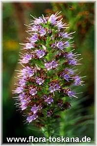 Der Stolz-von-Madeira (Echium candicans) ist tatsächlich auf den Kanarischen zu Hause, heute aber in vielen Mittelmeerländern verbreitet. Im Frühling begeistern die graulaubigen Immergrünen, die man auch Natternköpfe nennt, mit ihren großen, aufrechten, 15 bis 20 cm langen, blauen Blütenkerzen im Frühsommer, die nicht nur Bienen und frühe Schmetterlinge in Scharen anlocken, sondern auch menschliche Betrachter. Die Kronen sind selten mehr als 1,5 m hoch, aber mindestens ebenso breit, da sich die Zweige wie ein Kerzenleuchter kandelaberartig anordnen. An ihren Triebenden stehen die samtweich behaarten Blätter quirlartig zusammen ? eine wirklich stolze Erscheinung, nicht nur für Madeira, sondern auch für Ihren Topf- oder Wintergarten zu Hause, den er in Pflanzgefäßen oder eingesetzt in Wintergartenbeete bereichert.