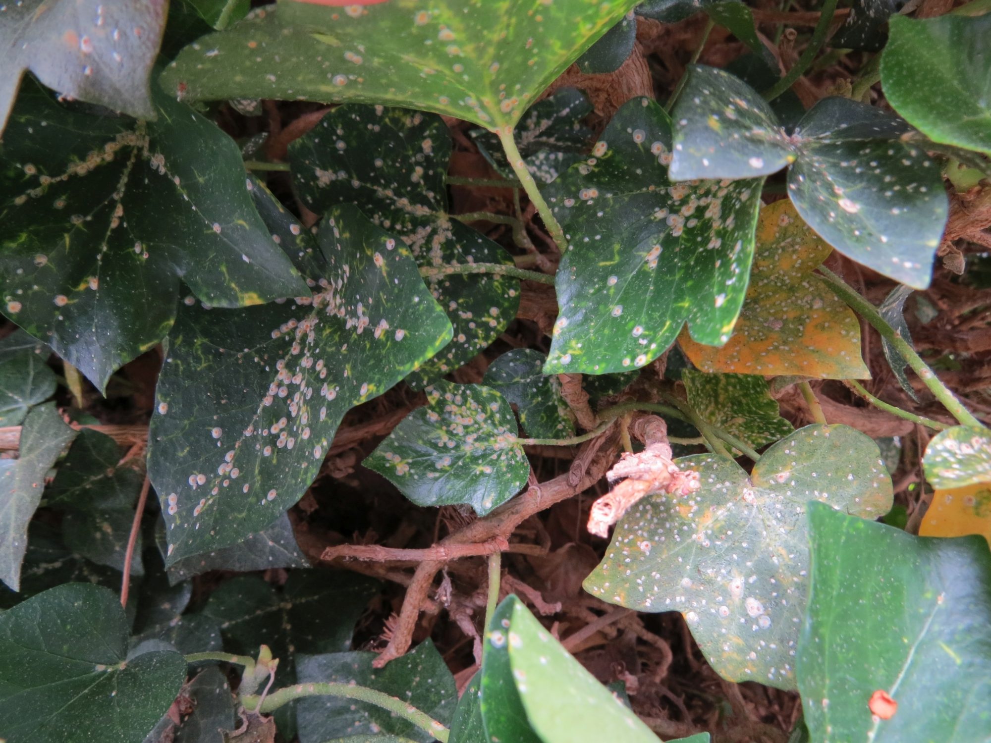 mein Efeu scheint von Schädlingen befallen zu sein. Viele Blätter haben Verfärbungen (siehe Bilder), nachfolgend auch ein Bild des vermutlichen Verursachers.