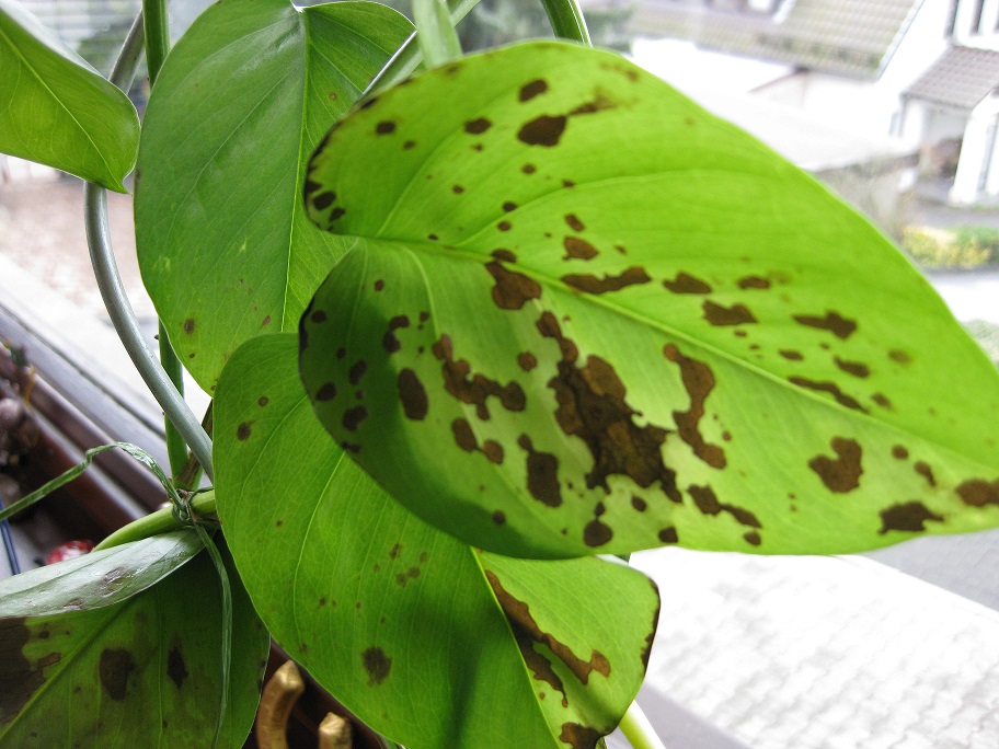 Efeutute mit schwarzen und braunen Flecken auf den Blättern