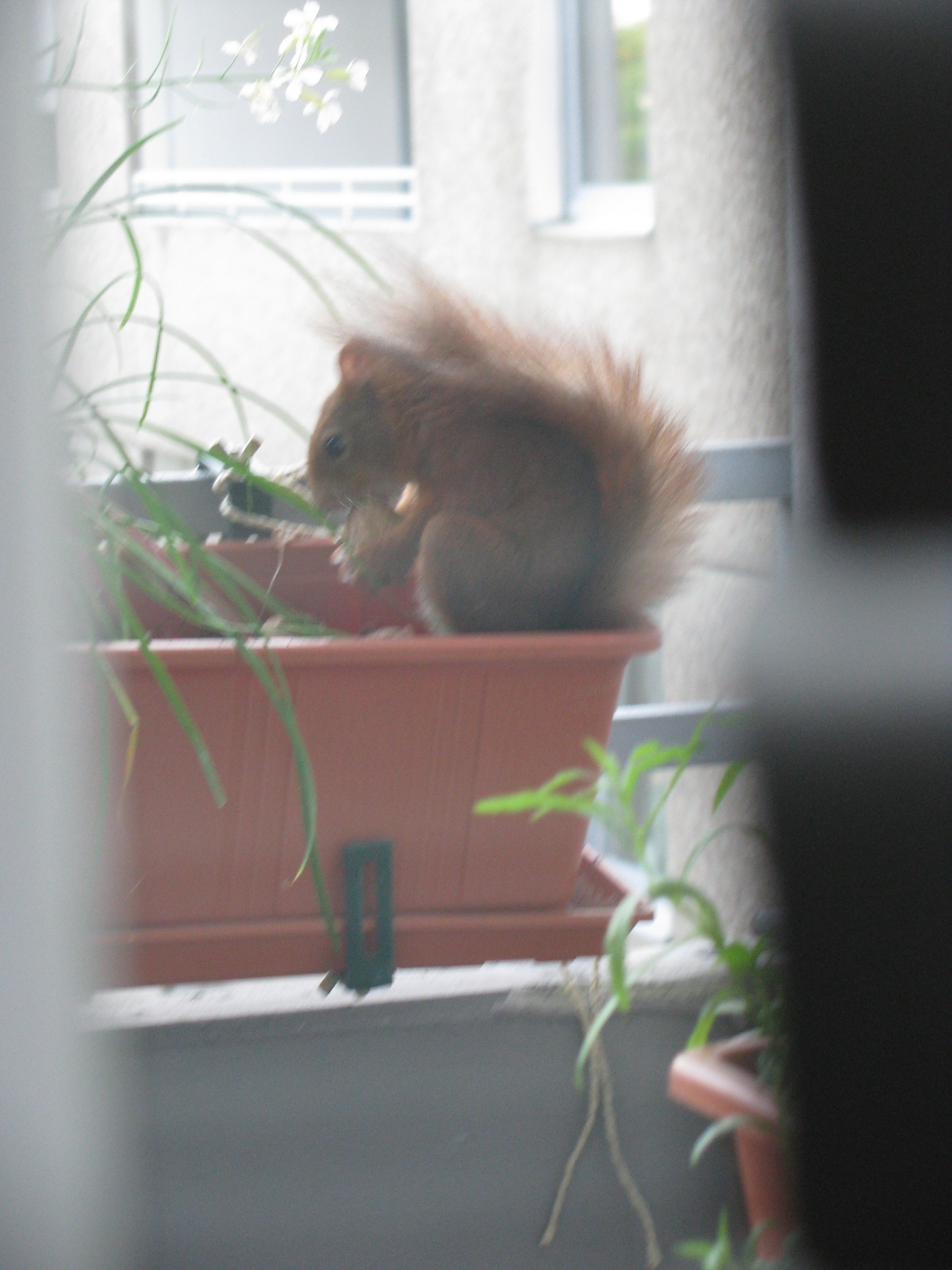 heute morgen hab ich zum ersten Mal ein Eichhörnchen auf meinem Balkon entdeckt