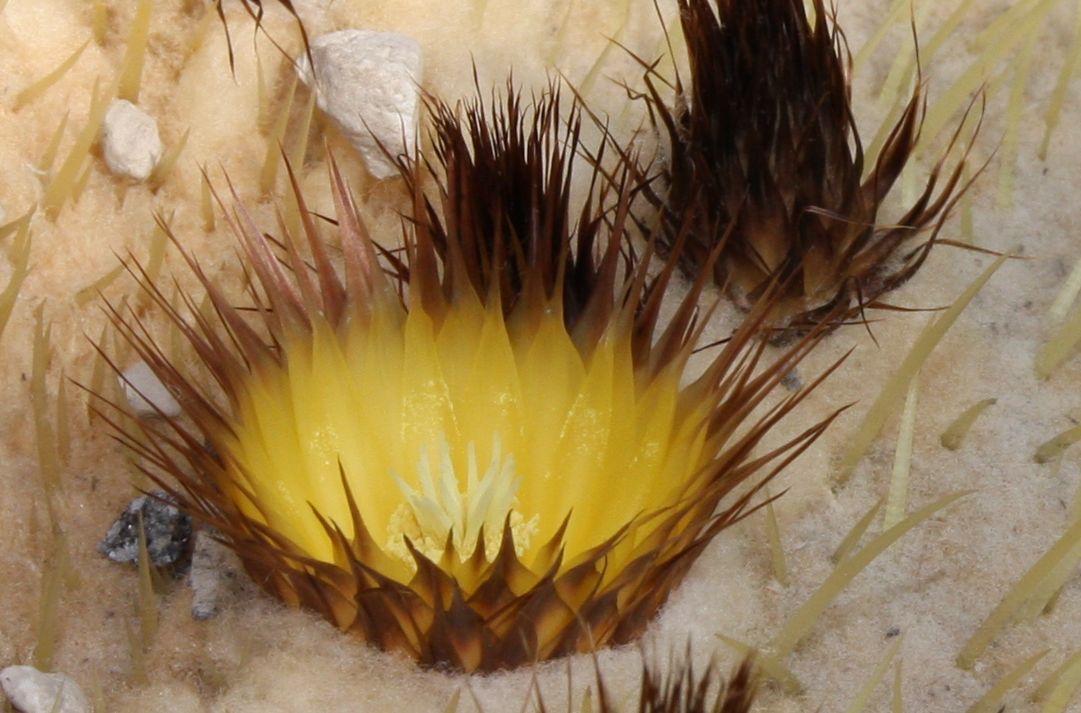 Makro Echinocactus grusonii Blüte.jpg