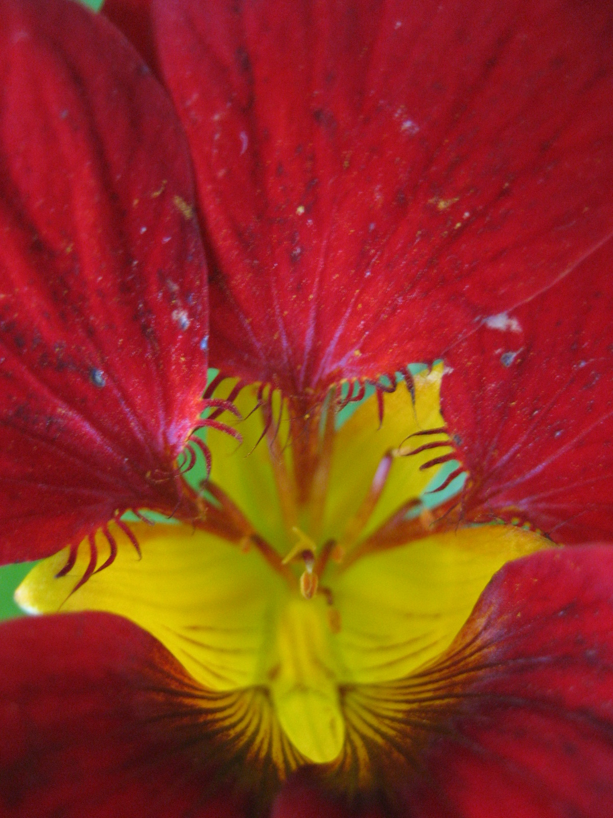 Interessant finde ich die Einstülpung in der Mitte der Blüte, welche mit diesen kleinen grünen Häärchen umgeben ist.
