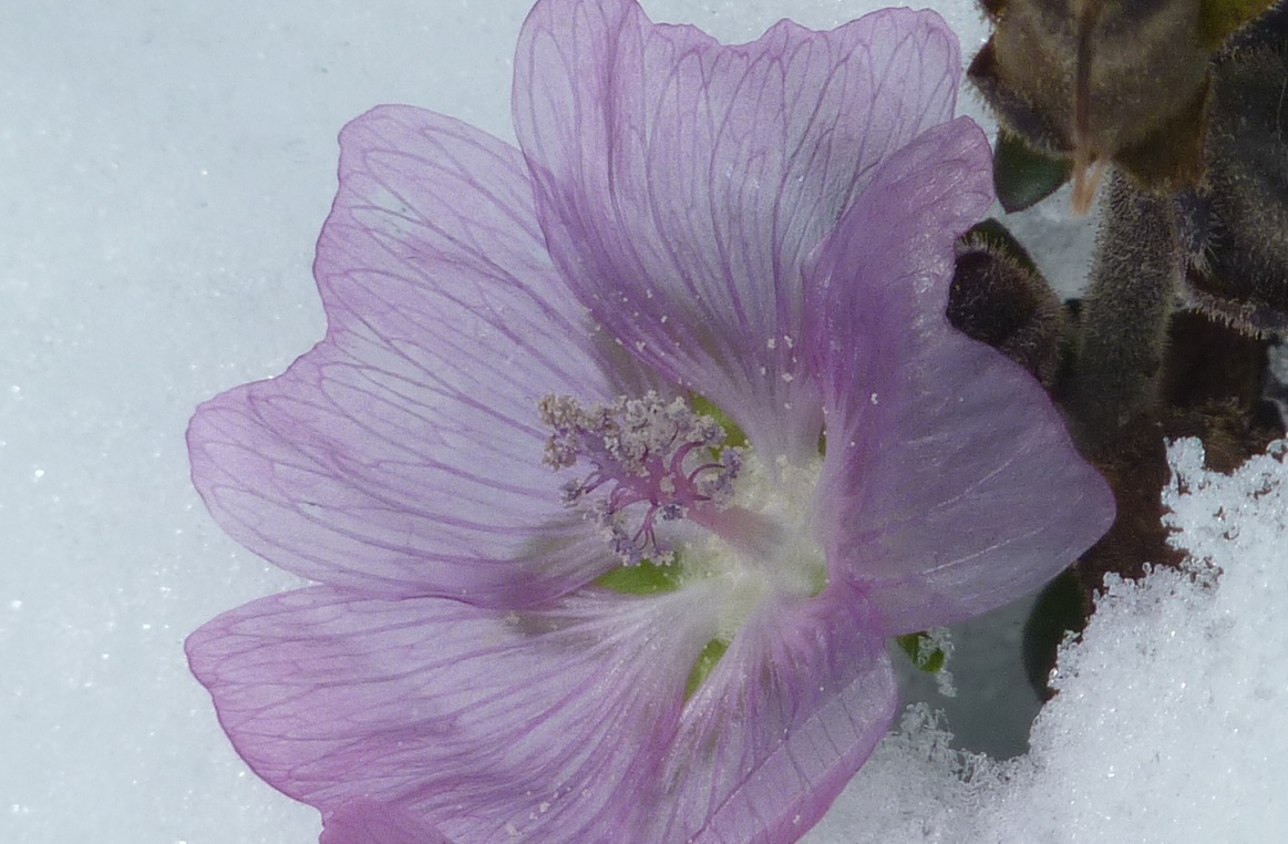 Die lila Liebesperlen werden langsam faulig und matschig... aber noch... noch sehen sie ganz lustig aus im weißen Schnee.
