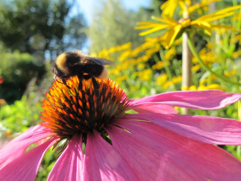 Das Wunderblumenfoto ist ja super!!!!! Die Farbe ist cool und das Insekt auch