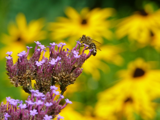 Gestern kam mir eine Biene am Eisenkraut ganz gelegen... (Ist allerdings auch nicht schwer darauf eine Biene zu fotografieren weil es die wirklich magisch anzieht)