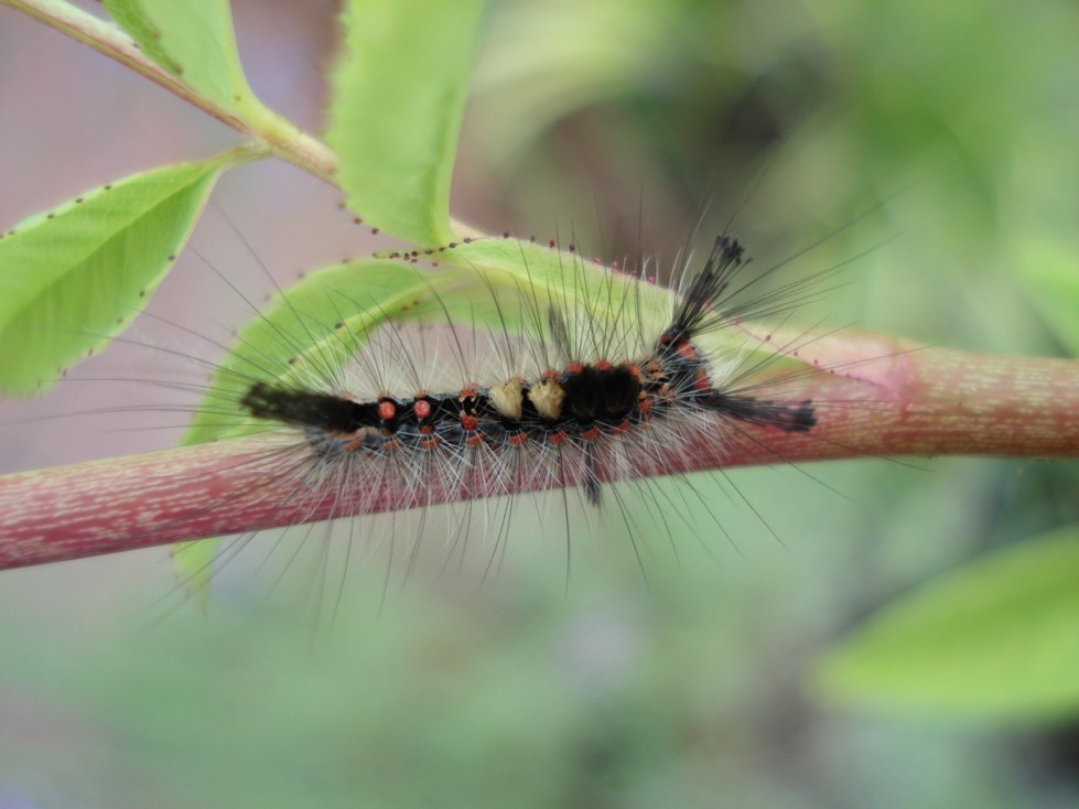 Schlehenspinner-Raupe auf der Wildrose