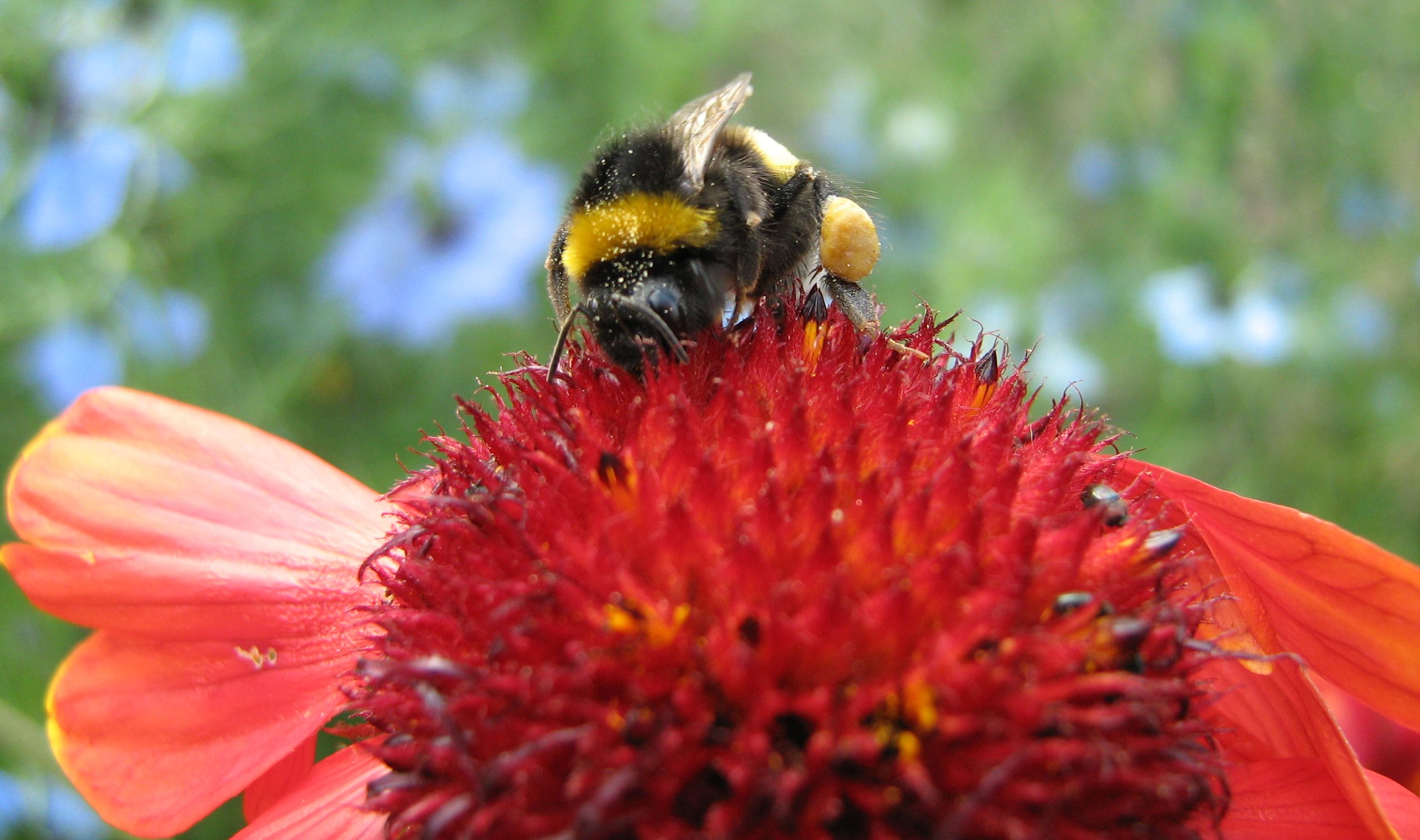 Es ist eine Sedum (Hauswurz-)-Blüte über blühendem Feldthymian.