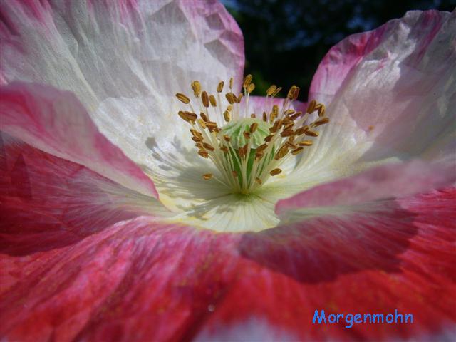 Hier eine Blüte, die sich nach den mendelschen Regeln entwickelt hat....aus vier verschiedenen Mohnsorten kam nun als neue Pflanze dies heraus.....