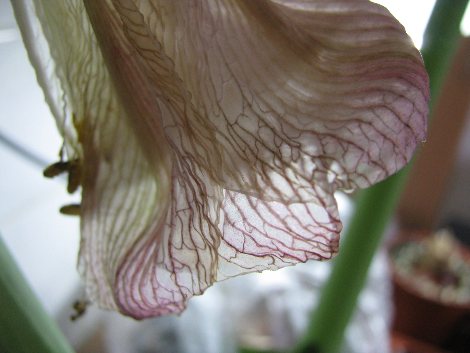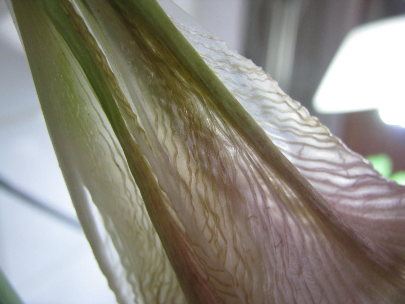 ...außerdem hoffe ich jemand weiß wie das Riesenblatt heißt , deswegen außer der schönen Nahaufnahme der Nervatur noch ein Ganzkörperfoto! Die ganze Pflanze hätte ich eh nie auf ein Bild bekommen...