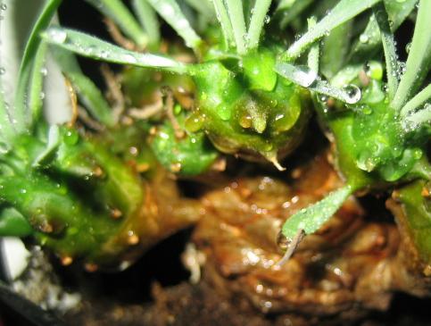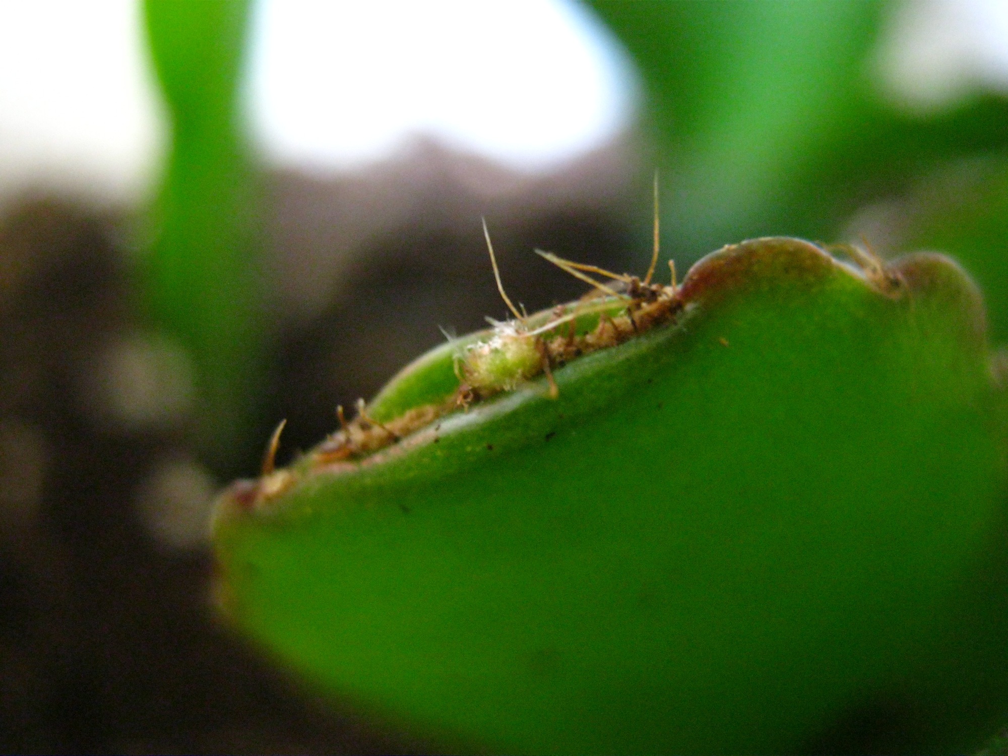 osterkaktussteckling scheint bereits wurzeln zu schlagen. sieht mir nämlich aus wie ein neues blatt, dass austreibt^^