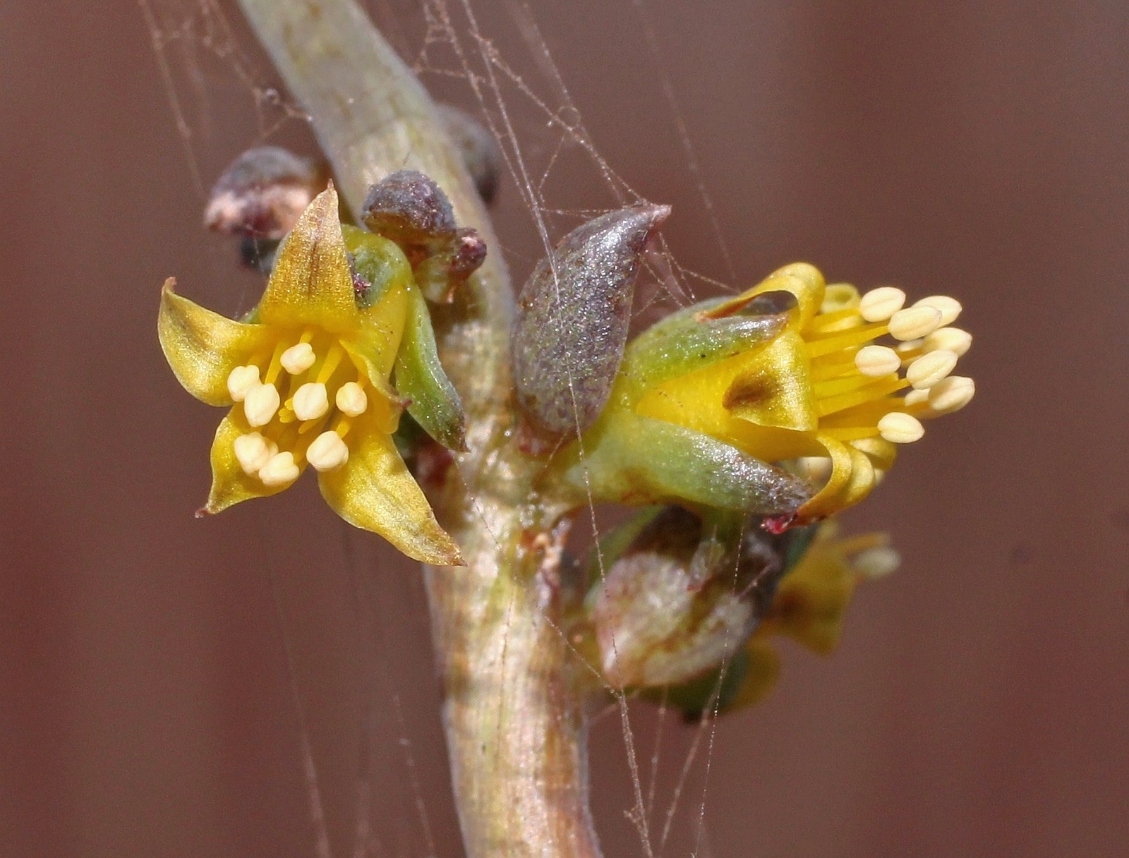 klein aber fein sind die Blüten von Lenophyllum. Von weitem betrachtet nix anderes als ein wenig schmutzig gefärbte Sedum-Blüten. Aus der Nähe sieht das schon ganz anders aus.