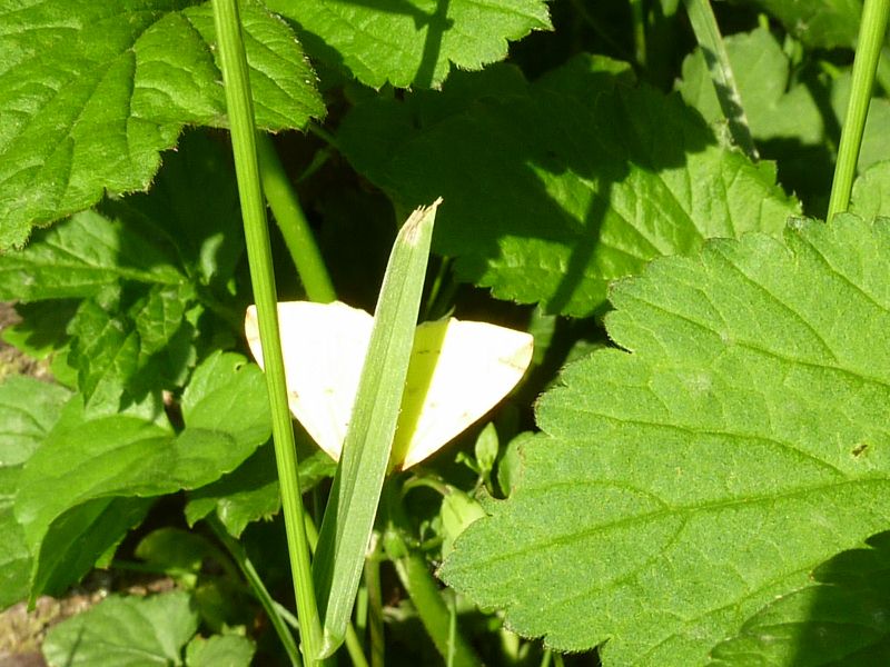 Auf den Gelbspanner bin ich überhaupt aufmerksam geworden, weil da so was Gelbes im Gras hing. Und dann haben meine Nachbarin und ich (bäuchlings) vorsichtig den Grashalm gebogen, um den Falter aus einer anderen Perspektive zu fotografieren, ohne dabei im Licht zu sein . Zum Glück hat keiner der anderen Nachbarn die netten Herren in den weissen Jacken gerufen.