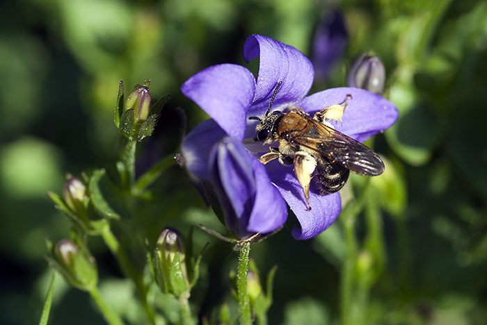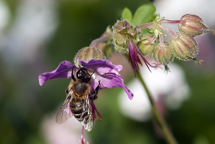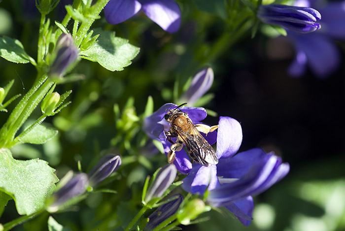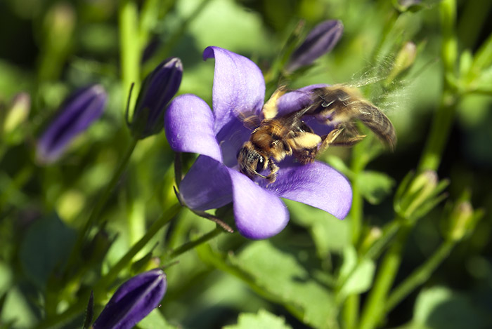 Der Konkurrenzkampf scheint auch groß, ich beobachte immer wieder, wie ein Bienchen ein anderes aus der Blüte schubst. Oder sind sie nur so kurzsichtig und das sind Unfälle?