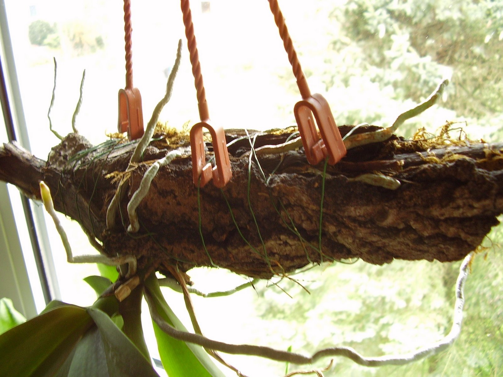 Phalaenopsis sind zwar nicht die Orchideen meiner Wahl, aber als Versuch habe ich mal eine vom Baumarkt-Grabbeltisch mitgenommen und sie als "Sandwich" aufgebunden. So hängt sie jetzt schon im zweiten Jahr bei mir am West-Fenster und das Blatt, das sie dieses Jahr geschoben hat ist größer als das aus dem Eingewöhnungs-Jahr. Sie wird manchmal mit der Badewannen-Brause gegossen und einmal die Woche für eine Stunde im Waschbecken in Wasser getaucht, diesem wird ein kleiner Schuss Blumendünger zugesetzt. Wie ihr seht, kein besonderer Aufwand.