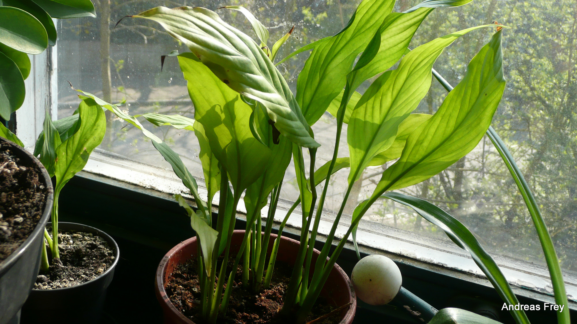 Bilder 3 und 4 zeigt die andere Pflanze die war immer schon so gelb. Wobei mir die braunen Spitzen erst in letzter zeit besonders aufgefallen sind. Sie sitzt in einem Gemisch Einheitserde 50:50 mit Kokohum. Die habe ich vor ca 2 Wochen dort reingesetzt, war anfangs ziemlich feucht und bis jetzt bauchte ich sie noch nicht giessen.
