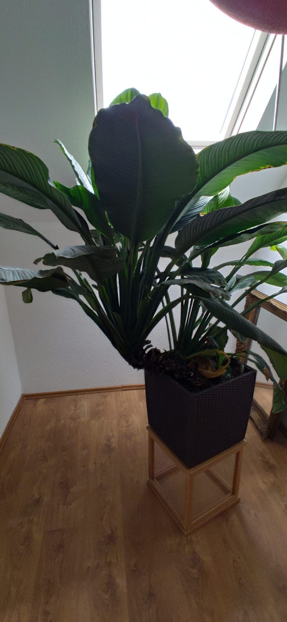 ich habe derzeit ein Problem mit meinem Einblatt. Es ist eine sehr große, naja gigantische Art und ich weiß nicht mehr, wie ich dem Herr werde. Mittlerweile ist sie ein wenig zur Seite gewachsen, da sie wahrscheinlich vor der Sonne flüchten möchte. Unschön ist jedoch der lange Stamm, an dem einst schöne Blätter waren. Mit der Zeit musste ich diese aber ab schneiden.