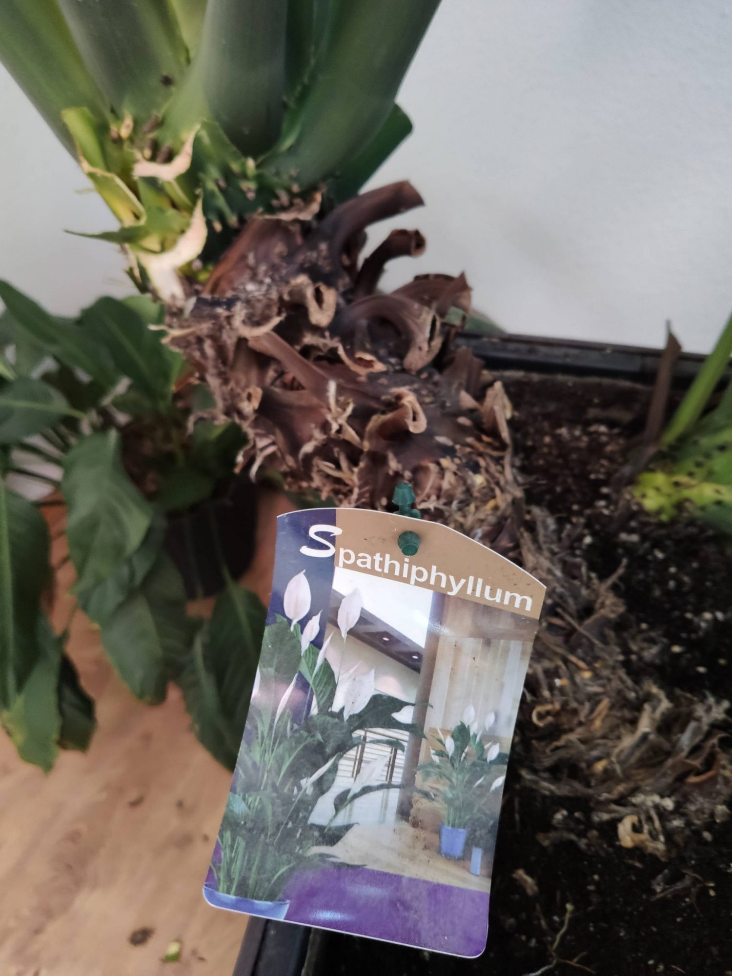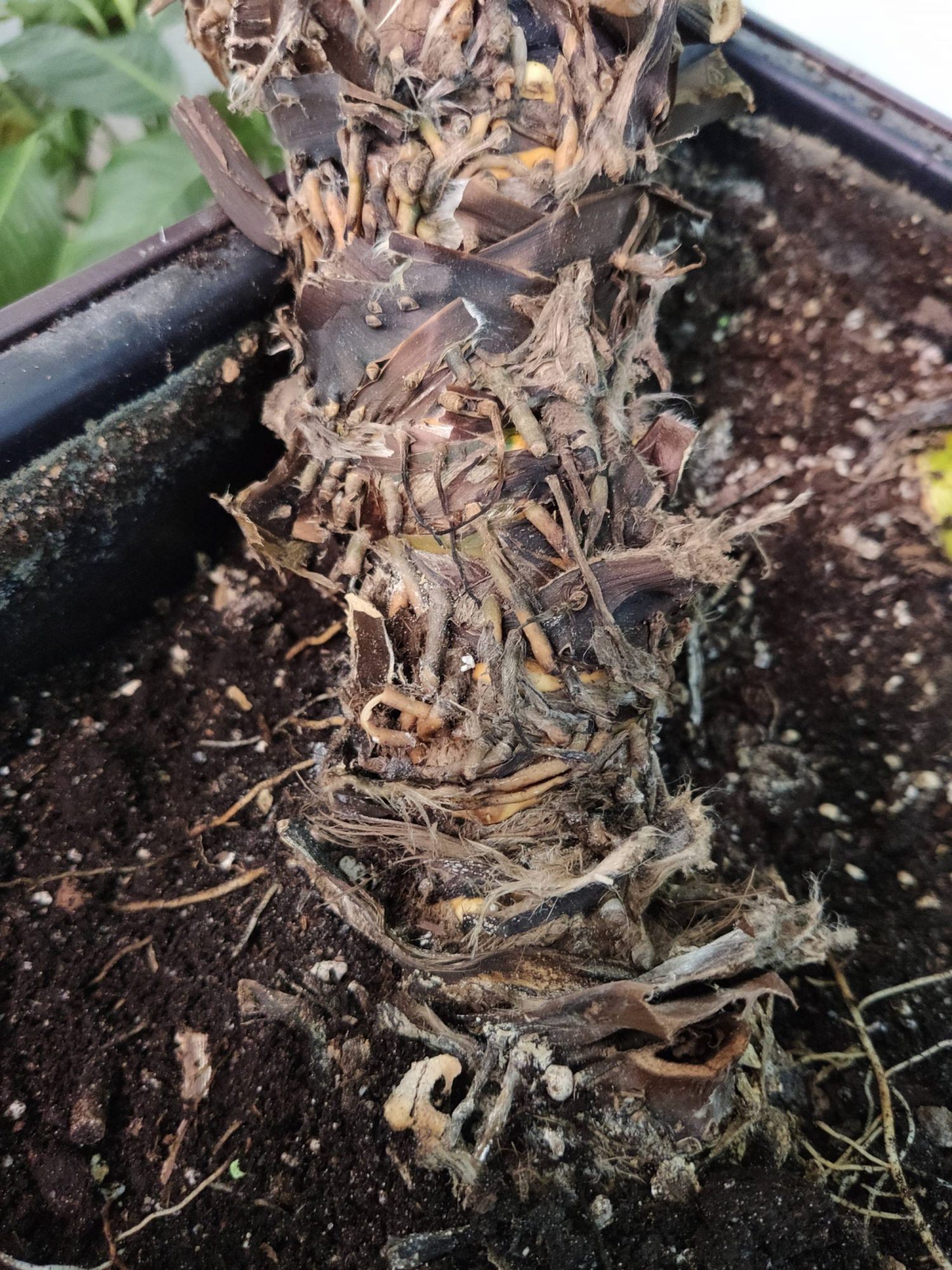 Ich möchte das braune Teil los werden und die Hauptpflanze wieder gerade in der Mitte im Topf haben.