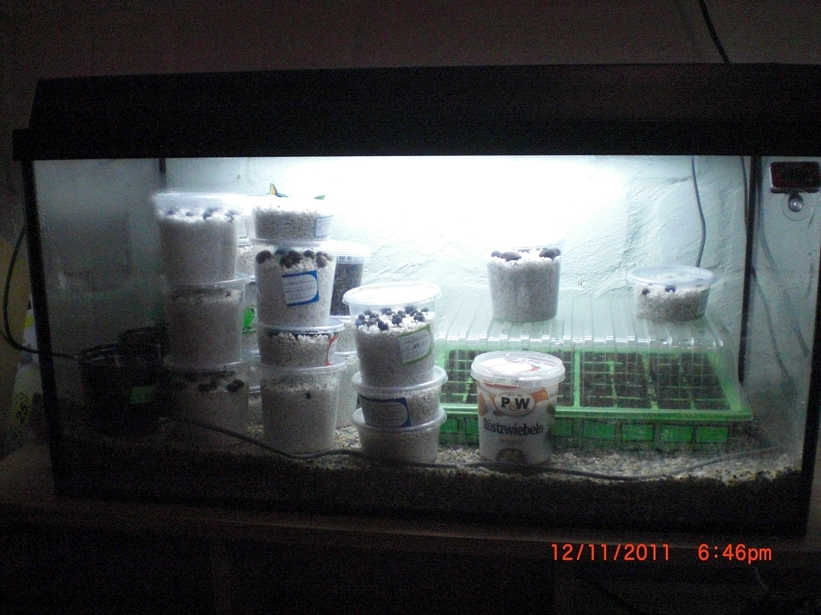 So, hier mal mein versprochenes Foto. Das Aquarium (Greenarium) hat sich schon richtig gefüllt. Keimerfolge konnte ich auch schon verbuchen. Hat jemand noch Erfahrungen damit gesammelt, würde mich freuen. lg