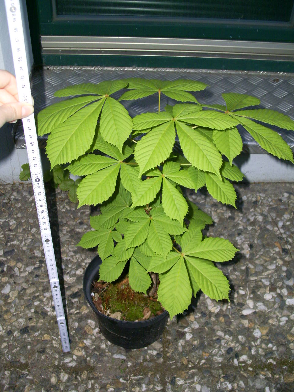 Mein 'Sorgenkind', auf das ich mich beziehe, ist eine Rosskastanie (Aesculus hippocastanum). Ich hab auch noch andere Bäume, u.a. eine junge Esche und zwei Ahornbäume. Die stehen im Moment alle noch in Töpfen, werden aber zusehends größer.