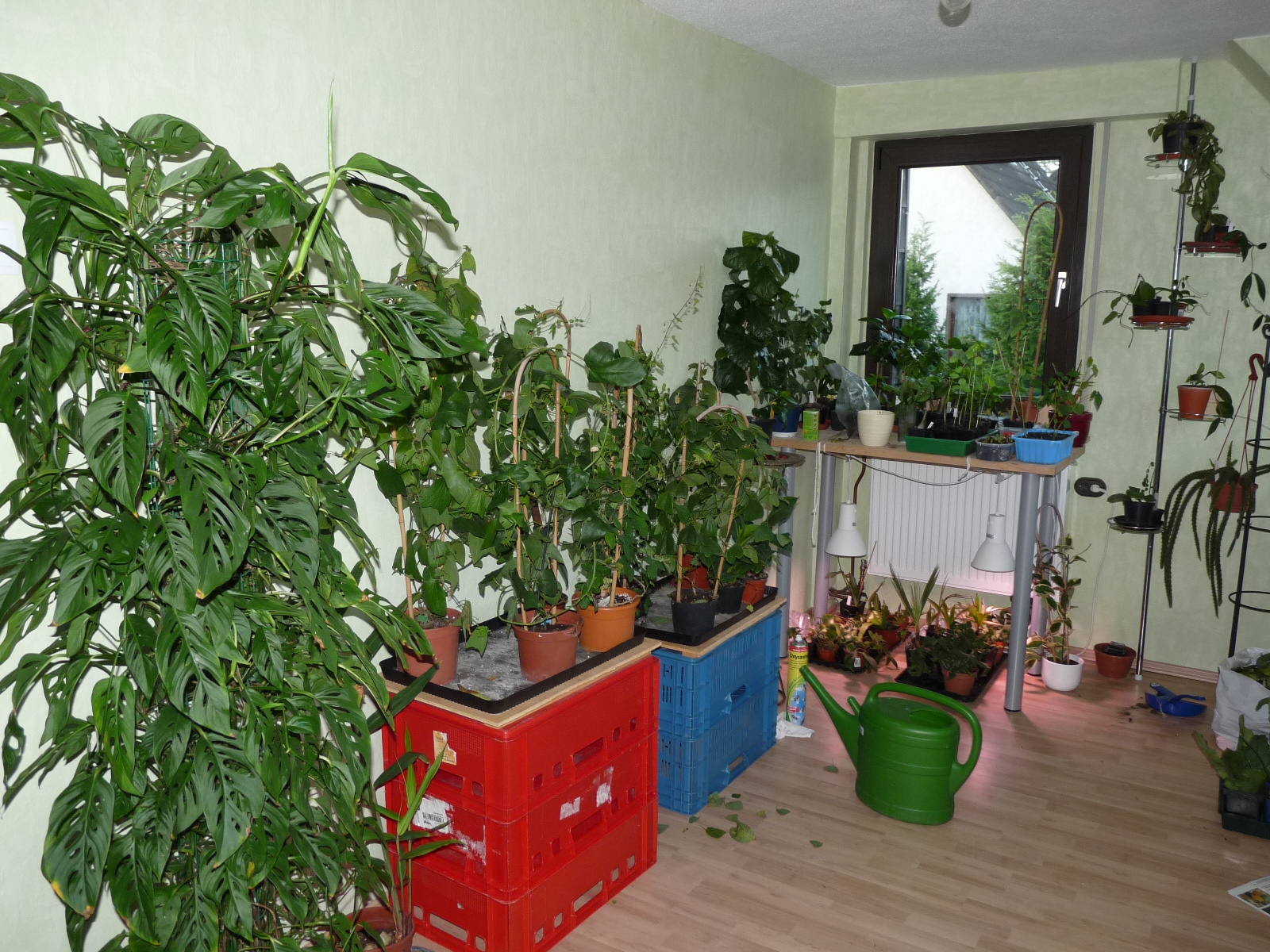 Du kannst seitlich um das Dachfenster zwei hohe Regal längs in den Raum stellen. Dann passen deine Passis unten hin und du kannst das Licht für die anderen Pflanzen nutzen und die ins Regal stellen.