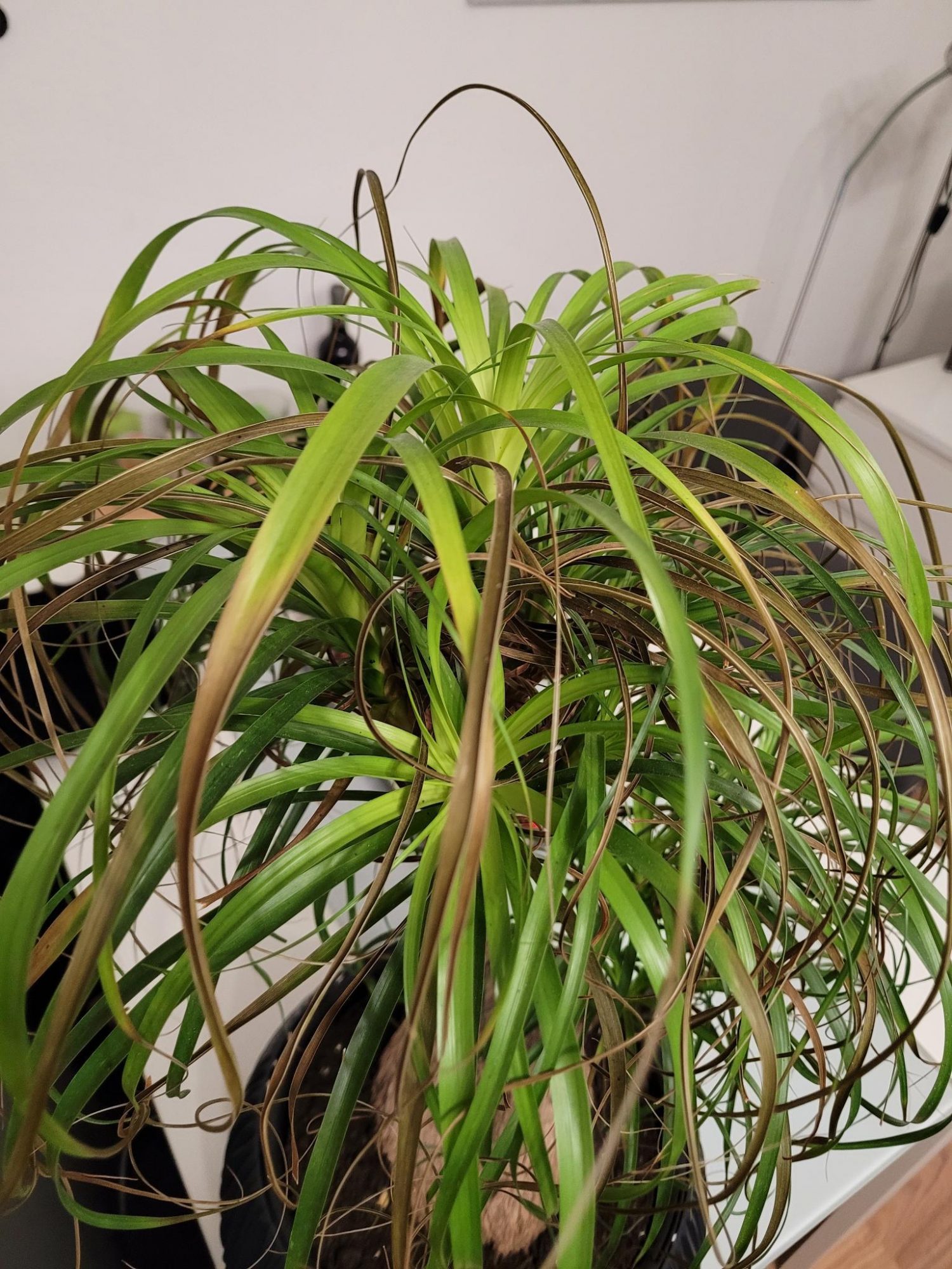 Nun bekommt er aufeinmal braune Blätter. Wir haben viele Elefantenfüße und alle bekommen übern Winter braune Spitzen, aber bei diesem sieht es anders aus. Die Farbe ist anders, viel dunkler und es ist auch deutlich mehr als bei den anderen.