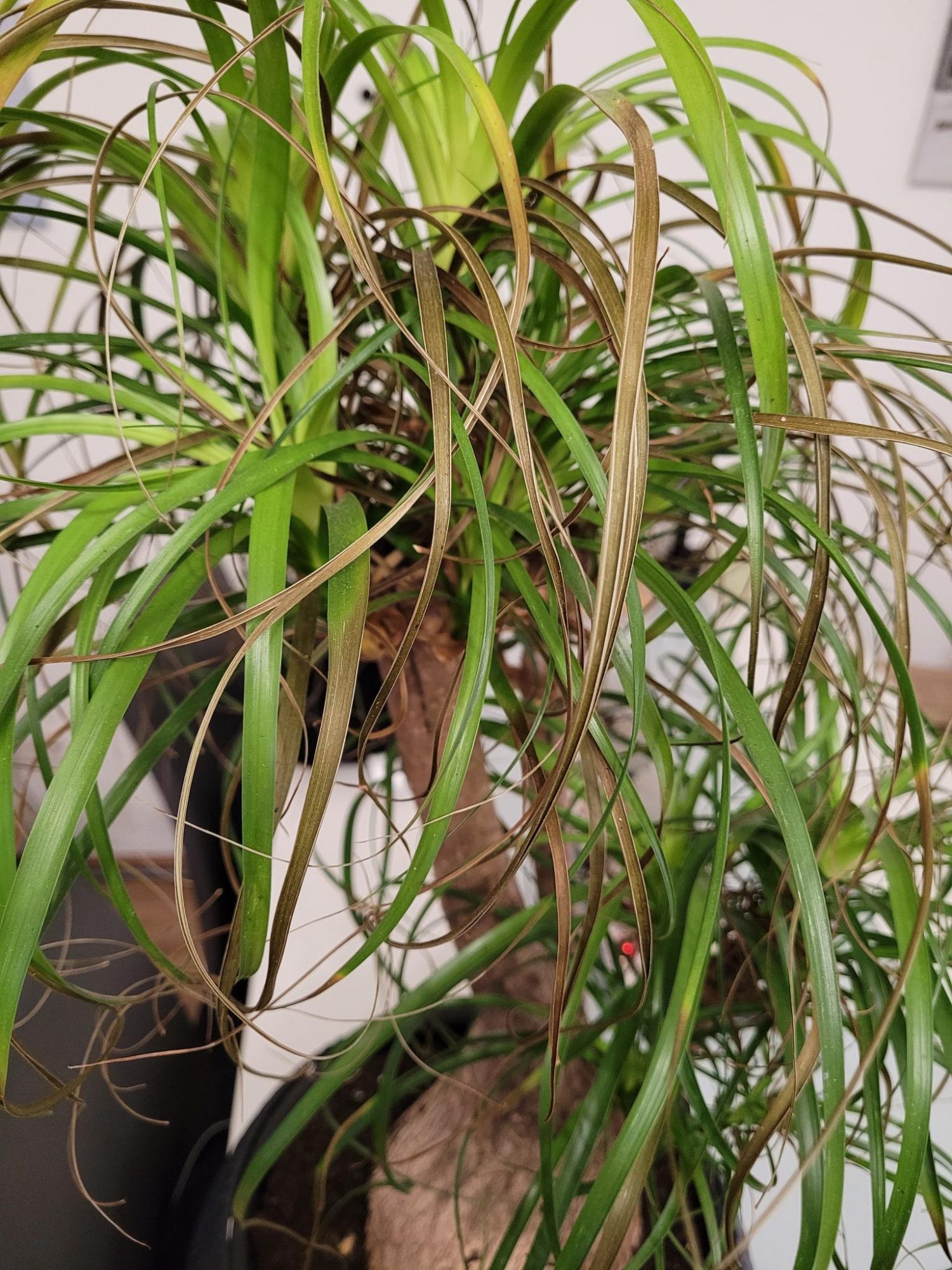 Nun bekommt er aufeinmal braune Blätter. Wir haben viele Elefantenfüße und alle bekommen übern Winter braune Spitzen, aber bei diesem sieht es anders aus. Die Farbe ist anders, viel dunkler und es ist auch deutlich mehr als bei den anderen.