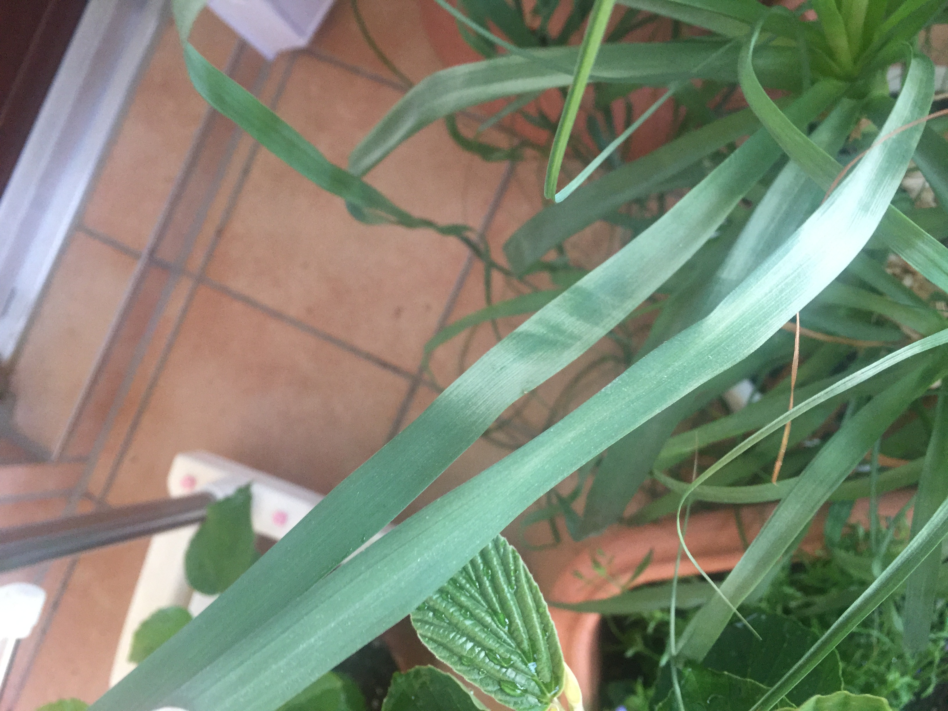 Seine Blätter werden irgendwie farblos, verlieren ihr grün. Werden aber auch nicht braun oder faulen, sondern werden einfach nur extrem schwach grün. Ich dachte erst, dass eine Staubschicht drauf liegen würde und habe seine Blätter mit einem feuchten Tuch abgewischt. Aber die Blätter sind einfach farblos. Hinzu kommt, dass die Blätter sich nicht mehr flexibel anfühlen, sondern eher wie Stroh. Trocken und scharfkantig.