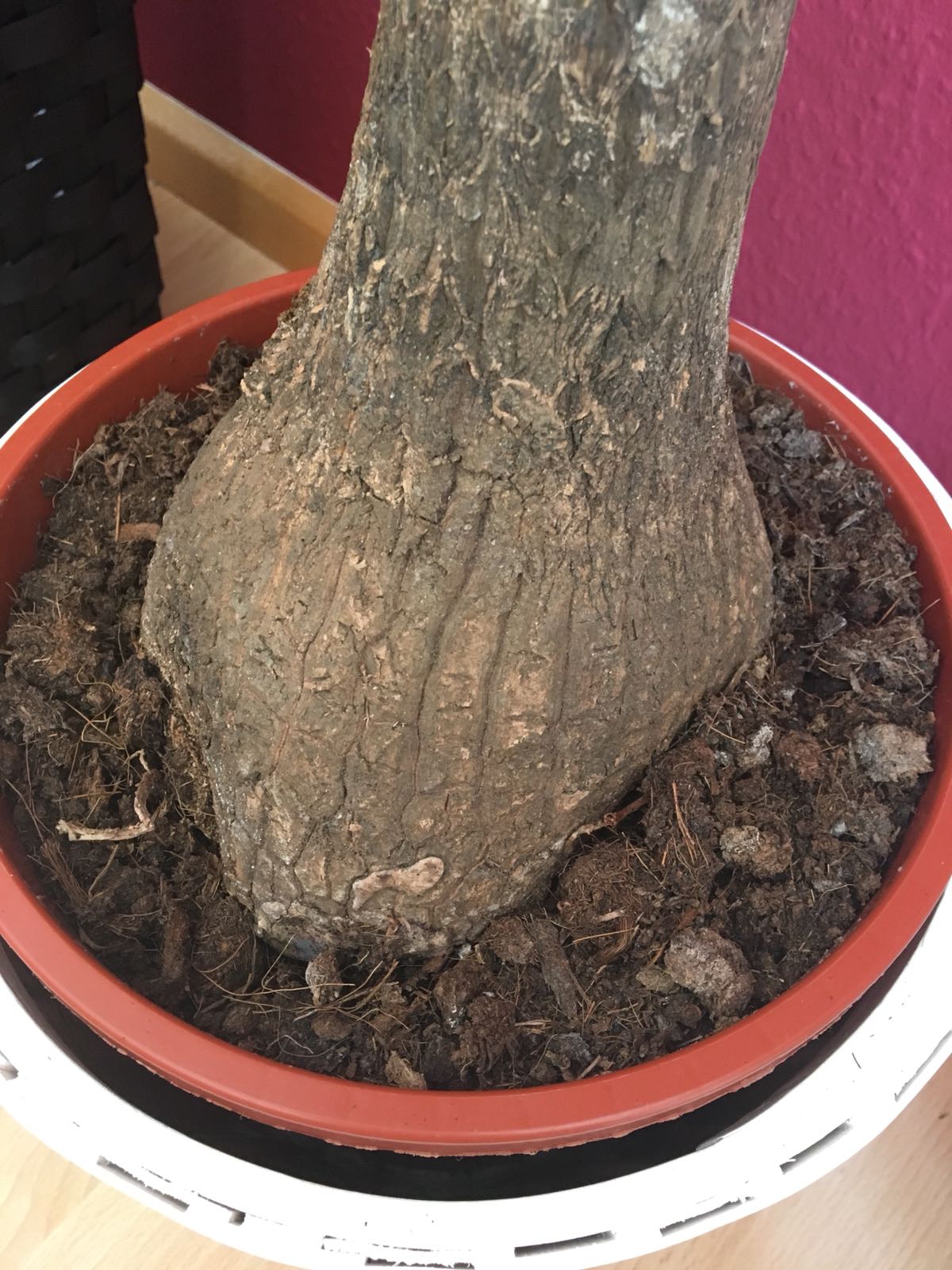 Nun hab ich mir einen Elefantenfuß gekauft. Beim transportieren ist mir der Stamm (der eh nur sehr leicht in der Erde war) umgekippt, sodass ich kurz einen Blick auf die Wurzeln erhaschen konnte und nun ja, ich habe so gut wie keine Wurzeln gesehen außer ein paar kleine Stummelchen...