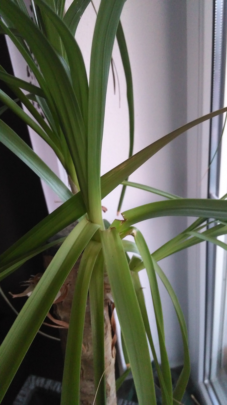 Ich gieße ihn selten... Vielleicht alle 2 Wochen. Die Erde ist nicht nass und der Wurzelballen ebenfalls nicht. Seit ich ihn habe, steht er am selben Ort, ich hab ihn nur die letzten Tage noch näher zum Fenster gestellt, weil ich dachte, vielleicht tut ihm mehr Licht gut.