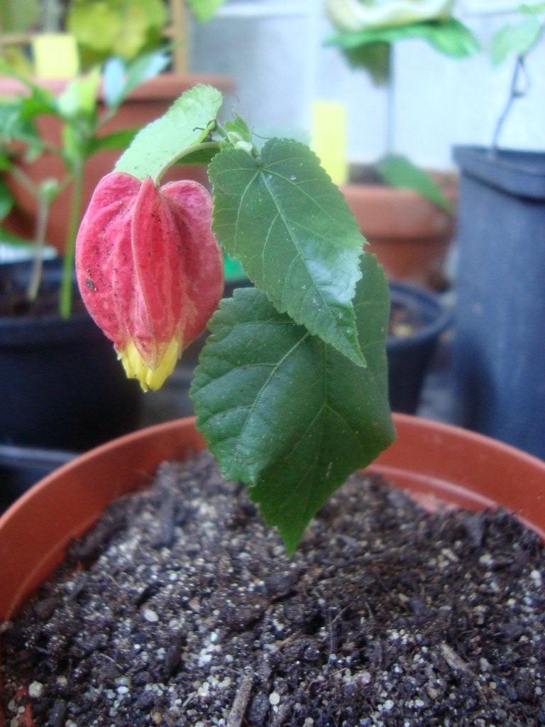 Die Blüten sieht aus wie ein kleiner Fallschirmspringer. Der Schirm aussen rot innen gelb und das Menchen braun.