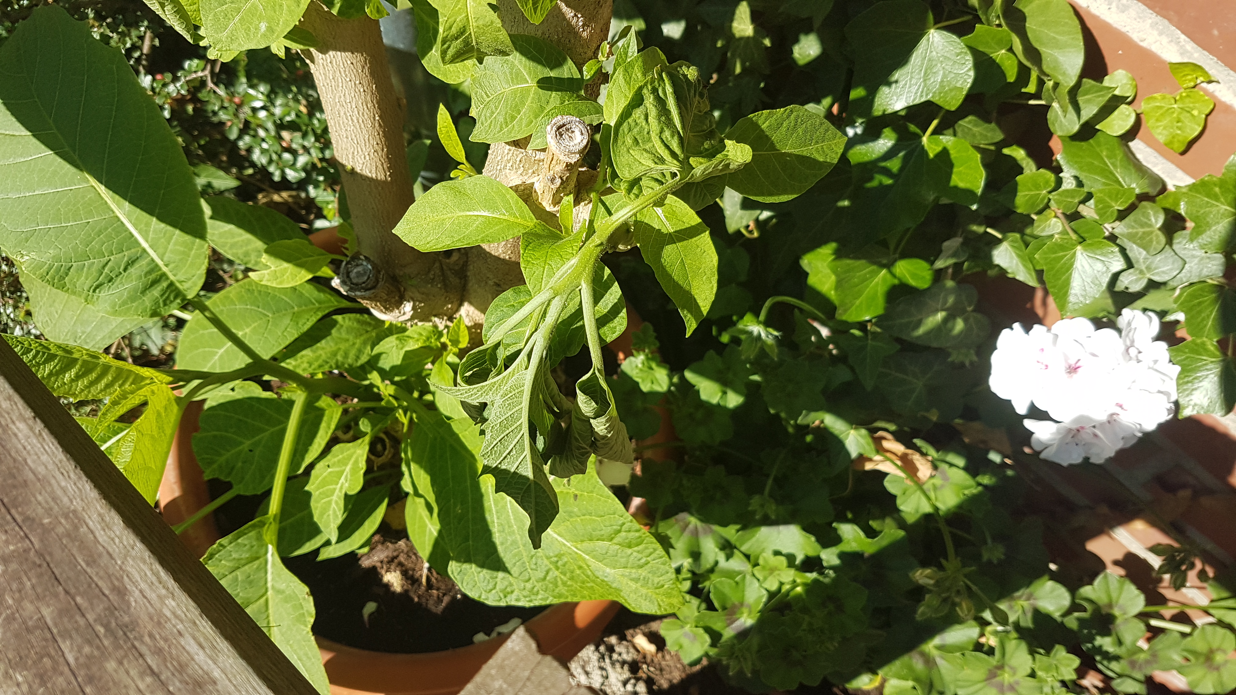 Es geht um meine Engelstrompete, die ich vor einigen Wochen von einer Liebhaberin erstanden haben. Sie ist schon einige Jahre alt, gesund und treibt kräftig aus. Allerdings wurde ein Trieb vor einigen Tagen zunehmend schlapper, konnte sich zunächst weitgehend wieder aufrichten, das klappt inzwischen aber nicht mehr. Ein zweiter, kleinerer Trieb zeigt ebenfalls erste Anzeichen. Die Blätter sterben (noch) nicht ab, sind nur welk.