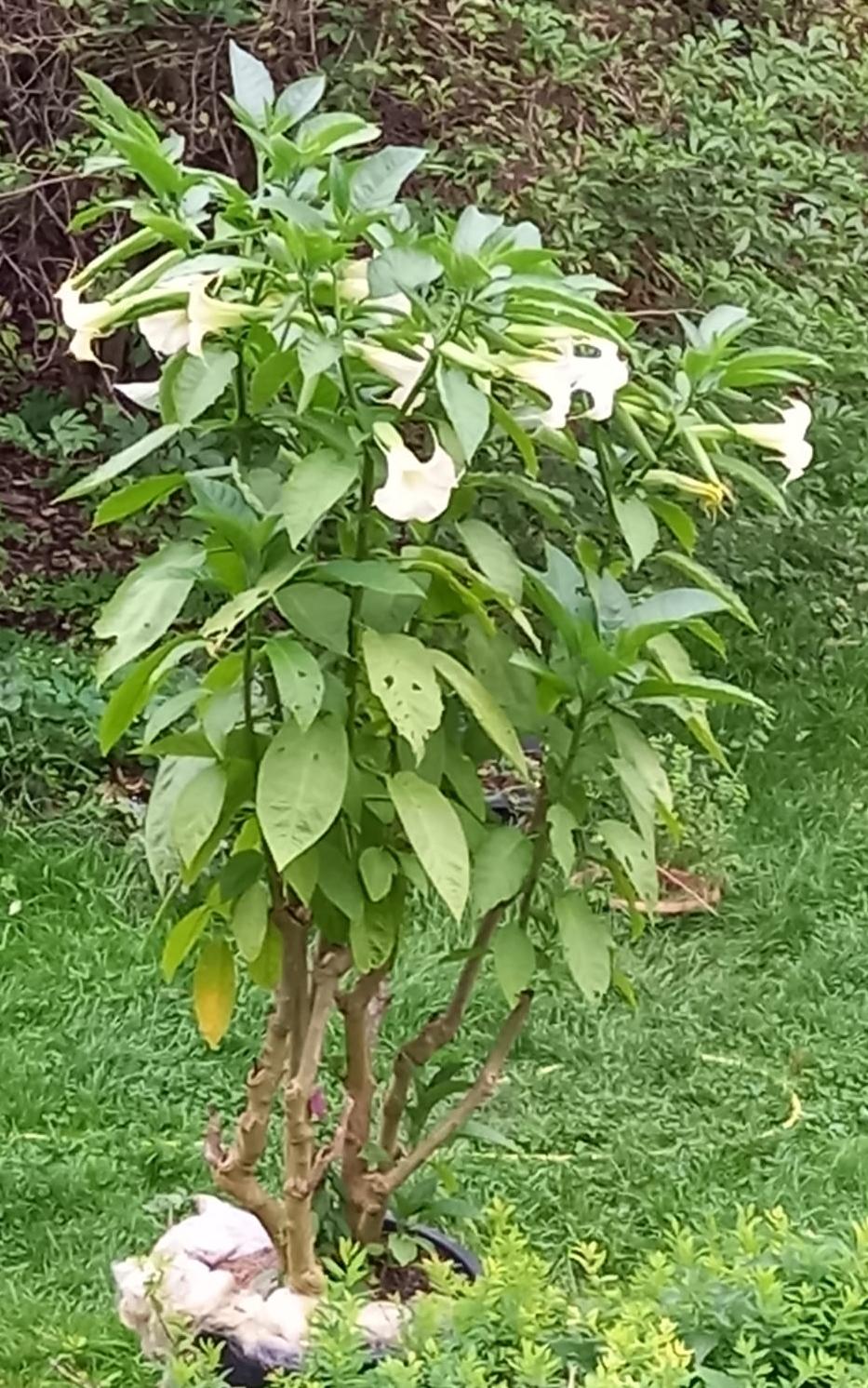 Es geht um eine weiße Engelstrompete, ein Wandelröschen und einen Blattkardamom.