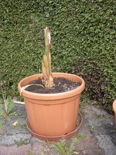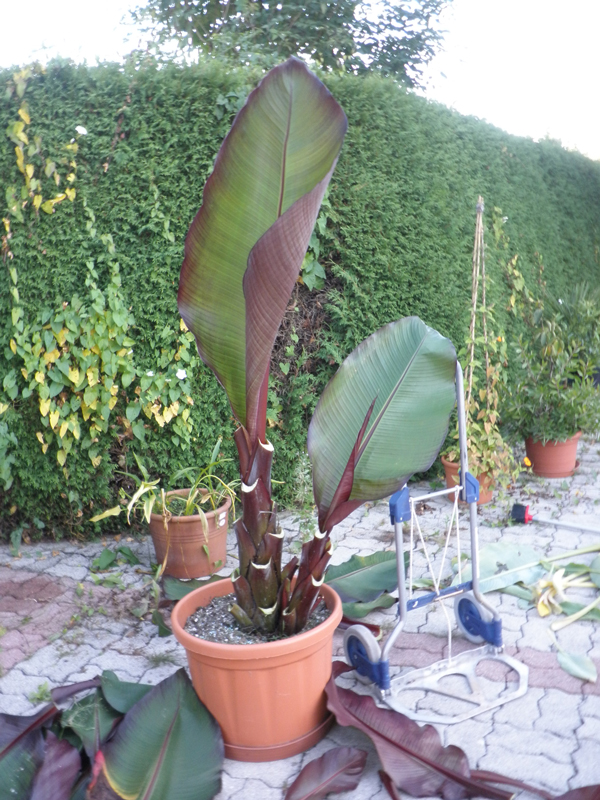 aus Mangel an geeigneten Fensterplätzen wandern bis auf die ausgepflanzte Basjoo alle Banenen ins Badezimmer im Keller. Dort standen sie im letzten Winter auch schon und es hat recht gut geklappt.
