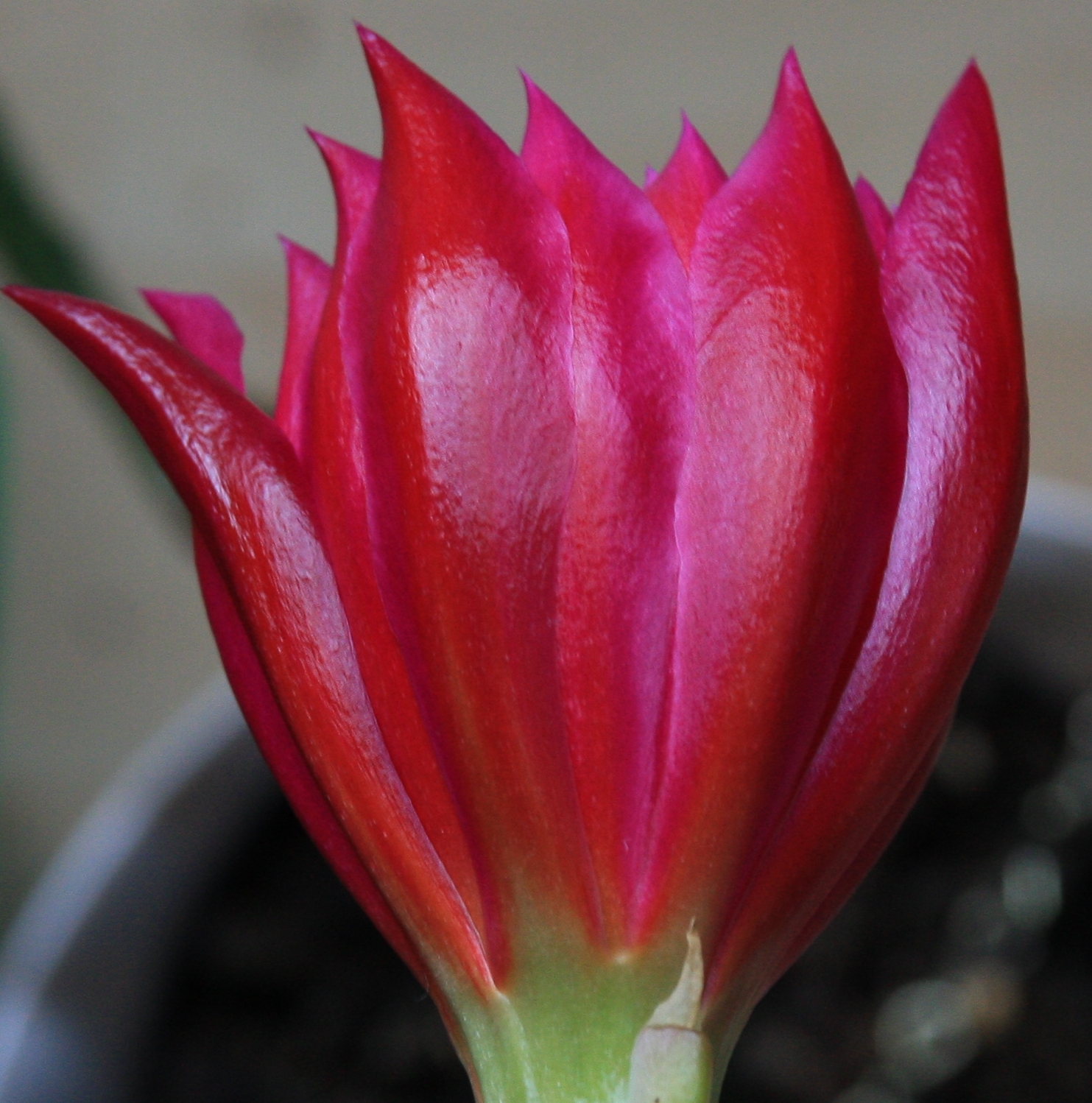 Ich kann´s echt nicht sagen, vielleicht ist das so eine Sorte? Ich bin eigentlich mehr der Weihnachtskaktus-Typ obwohl die Osterkakteen ja wunderschön blühen und die neuen Sorten kompakter sein sollen (und super tolle Blüten haben seufz.)