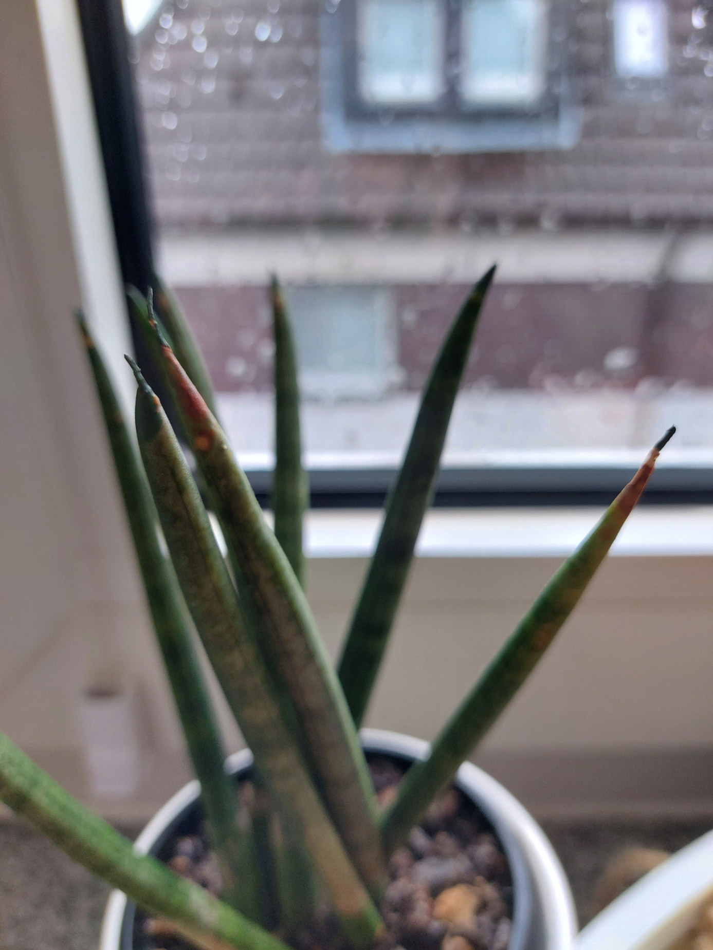 Ich habe vor ca. 4 Wochen diesen Bogenhanf von meiner Mutter "gerettet". Sie hatte ihn wohl lange Zeit über regelmäßig vergessen und dann nach einem Hinweis auf Wasser ihn komplett übergossen. Das arme Ding hat nun Flecken und Verfärbungen. Hatte ihn damals direkt in passende Kakteenerde umgetopft, (die Wurzeln sahen sogar noch recht ok aus) sehr sparsam aber regelmäßig gegossen und ihn sonnig gestellt (Ostfenster).