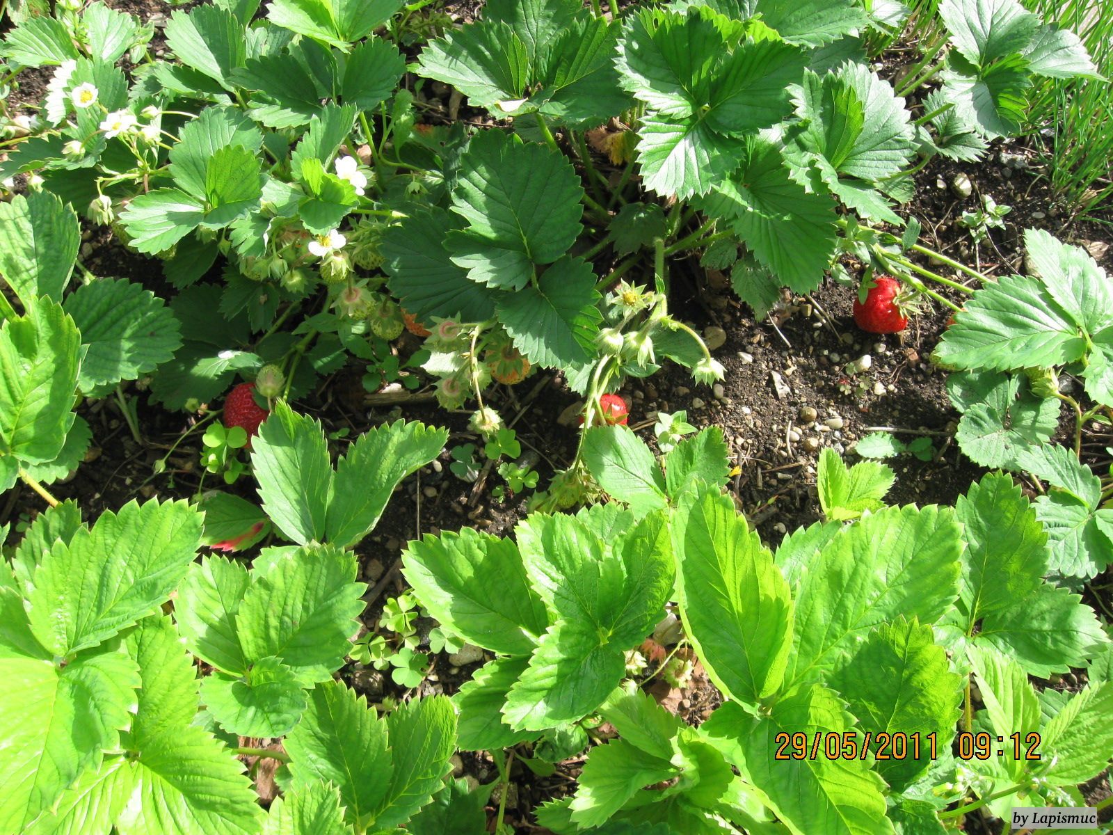 Die ersten Gurken haben wir schon geernet. Bei den Erdbeeren und Stachelbeeren dauert es auch nicht mehr lange. Die Schoten, Himbeeren und Stachelbeeren blühen schon