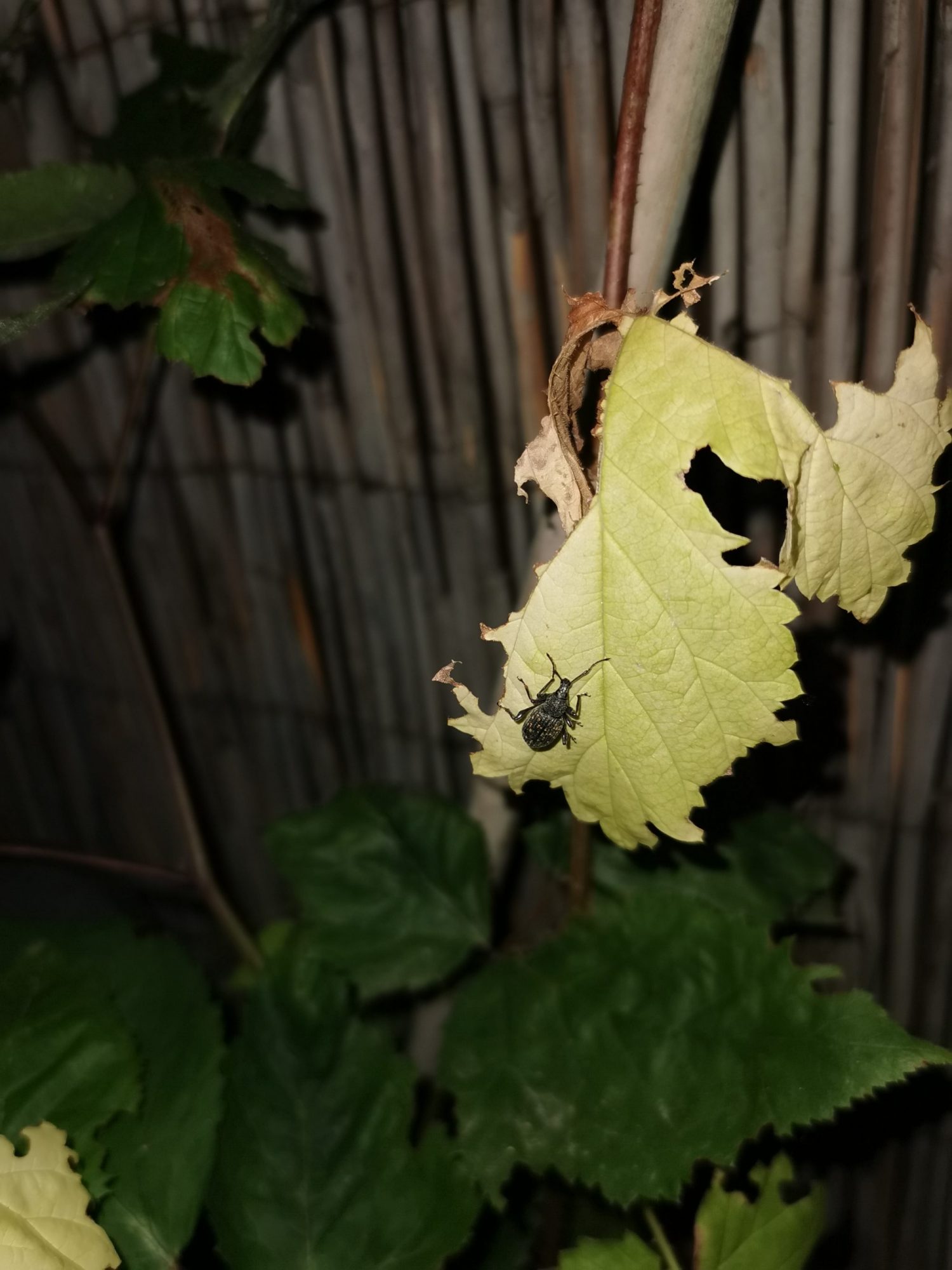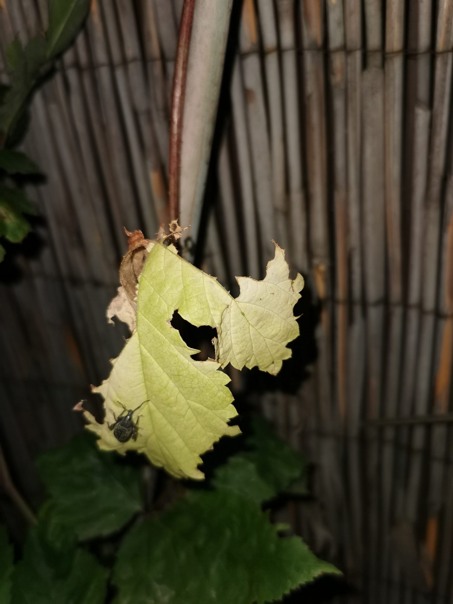 Hilfe, die Blätter meiner relativ neu erworbenen Passionsblume und der schon etwas länger auf dem Balkon stehenden Clematis werden angefressen. Ist das ein Dickmaulrüssler oder doch eher ein Ohrenkneifer? Die dazwischen stehende Hortensien mag er wohl nicht so.