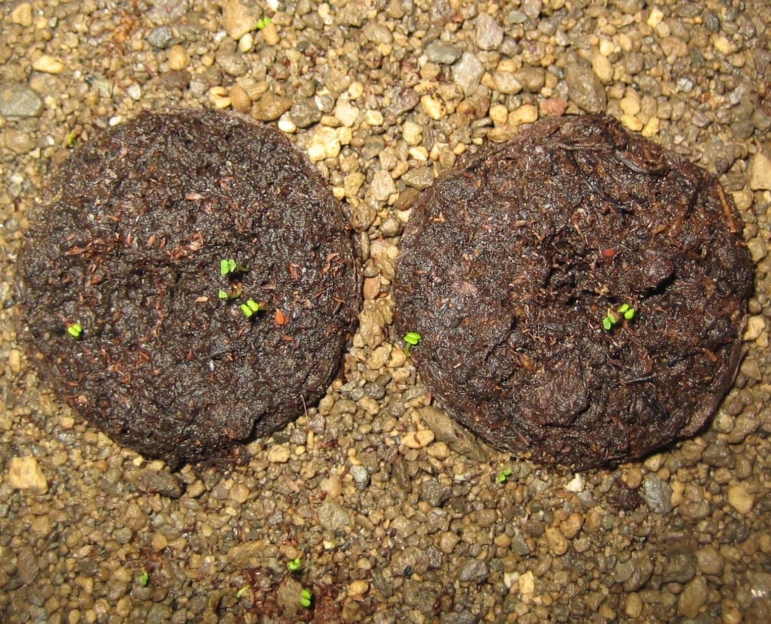 Ich habe zwei Torfquelltabs in die Mitte von reinem feinen Bims gesetzt und die kleinen feinen Samen (Sporen) darauf gestreut.