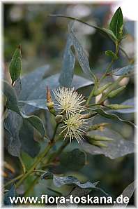 Pflanze: Immergrüne, sehr schnellwüchsige, bis 700 cm hohe Bäume mit attraktivem Laub. Bei E. citriodara verströmen die Blätter ein starkes Zitronenaroma, E. ficifolia zählt wegen seiner beeindruckenden, roten Blüten zu den beliebtesten Zierpflanzen der Subtropen.