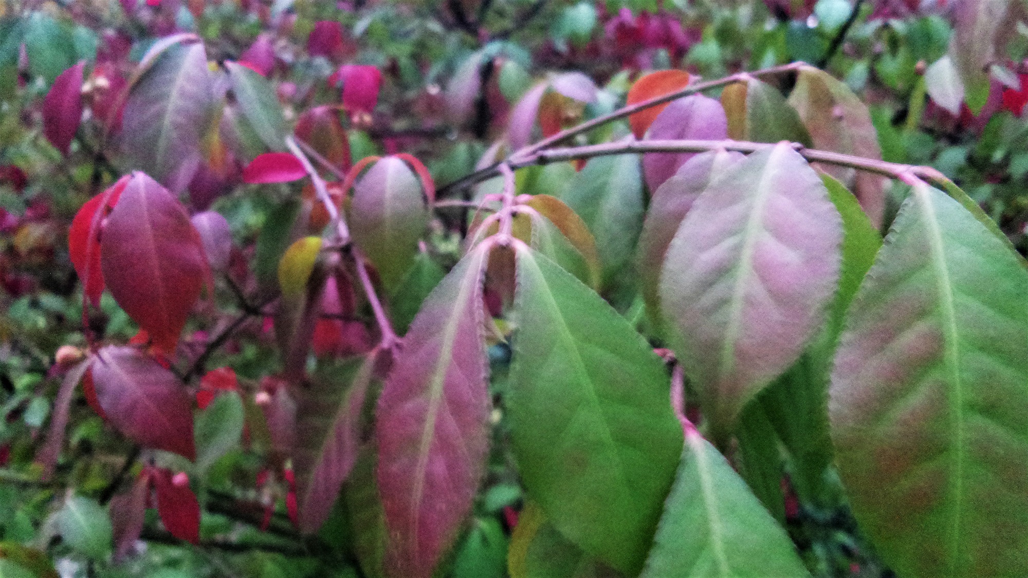 Ist das Euonymus alatus? Leider sind die Fotos, die ich bekommen habe, nicht so toll. Er steht in einem Kleingarten und soll seine Blätter auch im Winter behalten. Dann soll er leuchtend rot gefärbt sein.