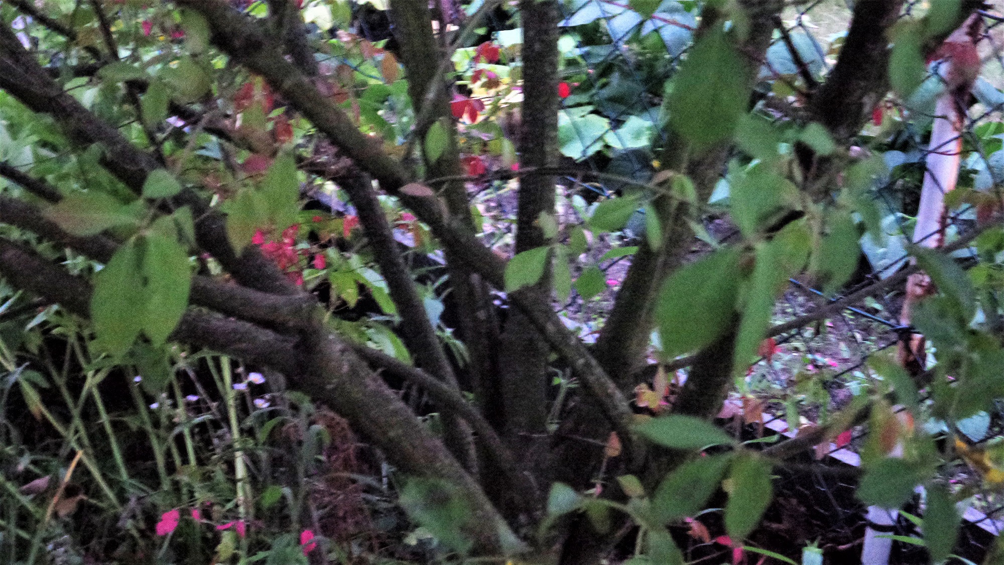 Ist das Euonymus alatus? Leider sind die Fotos, die ich bekommen habe, nicht so toll. Er steht in einem Kleingarten und soll seine Blätter auch im Winter behalten. Dann soll er leuchtend rot gefärbt sein.