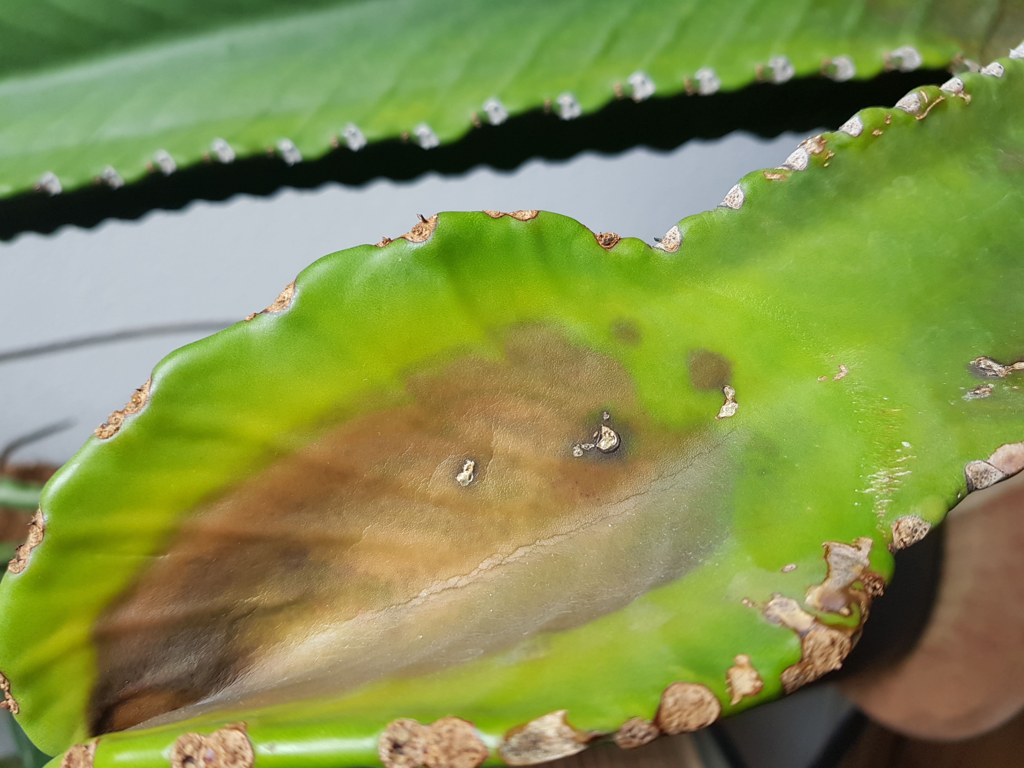 Meine 3 jähriger Euphorbia ingens ist plötzlich innerhalb der letzten 4 Wochen schnell braun geworden. Die verfärbten Stellen waren anfangs fest.