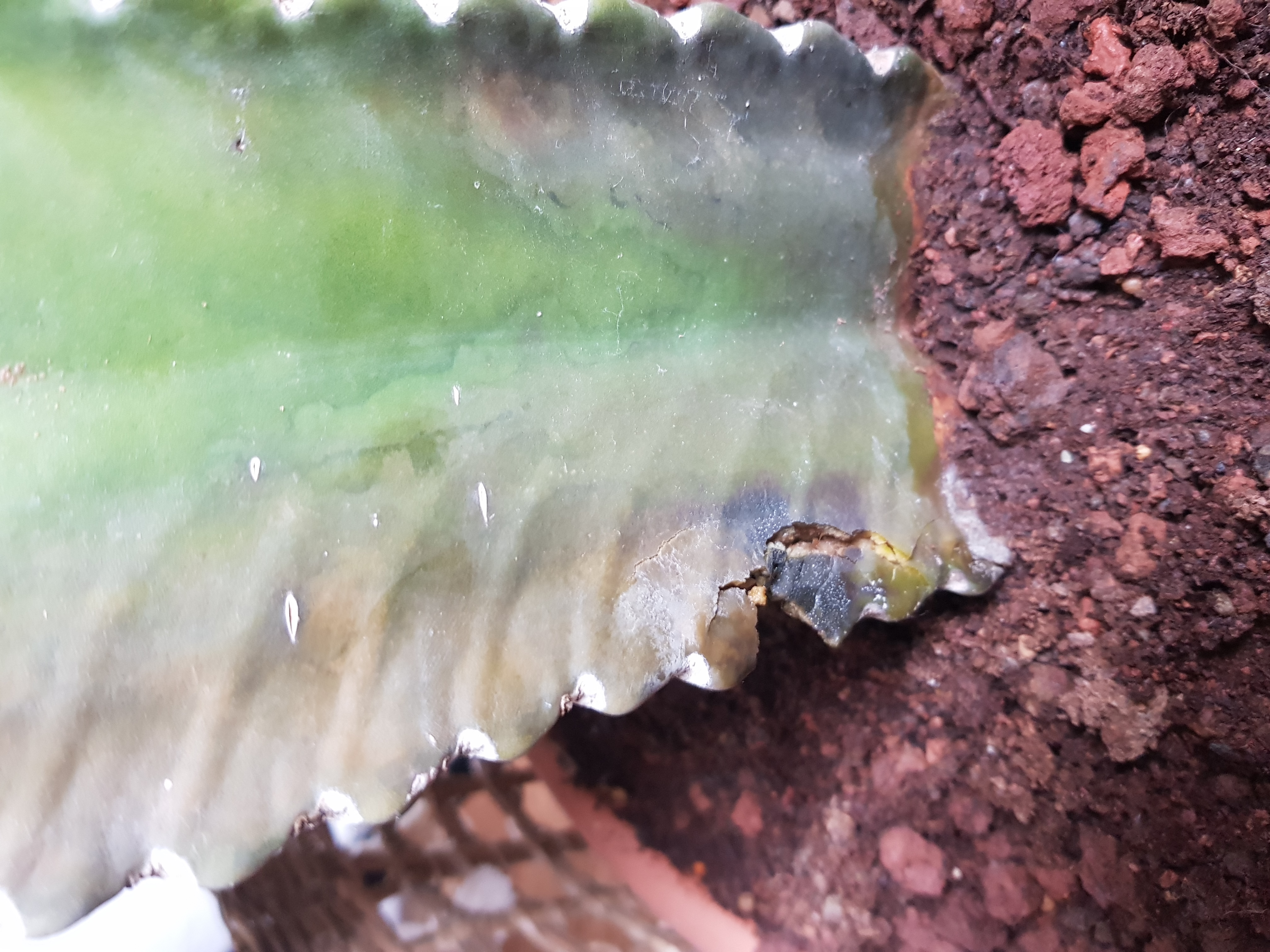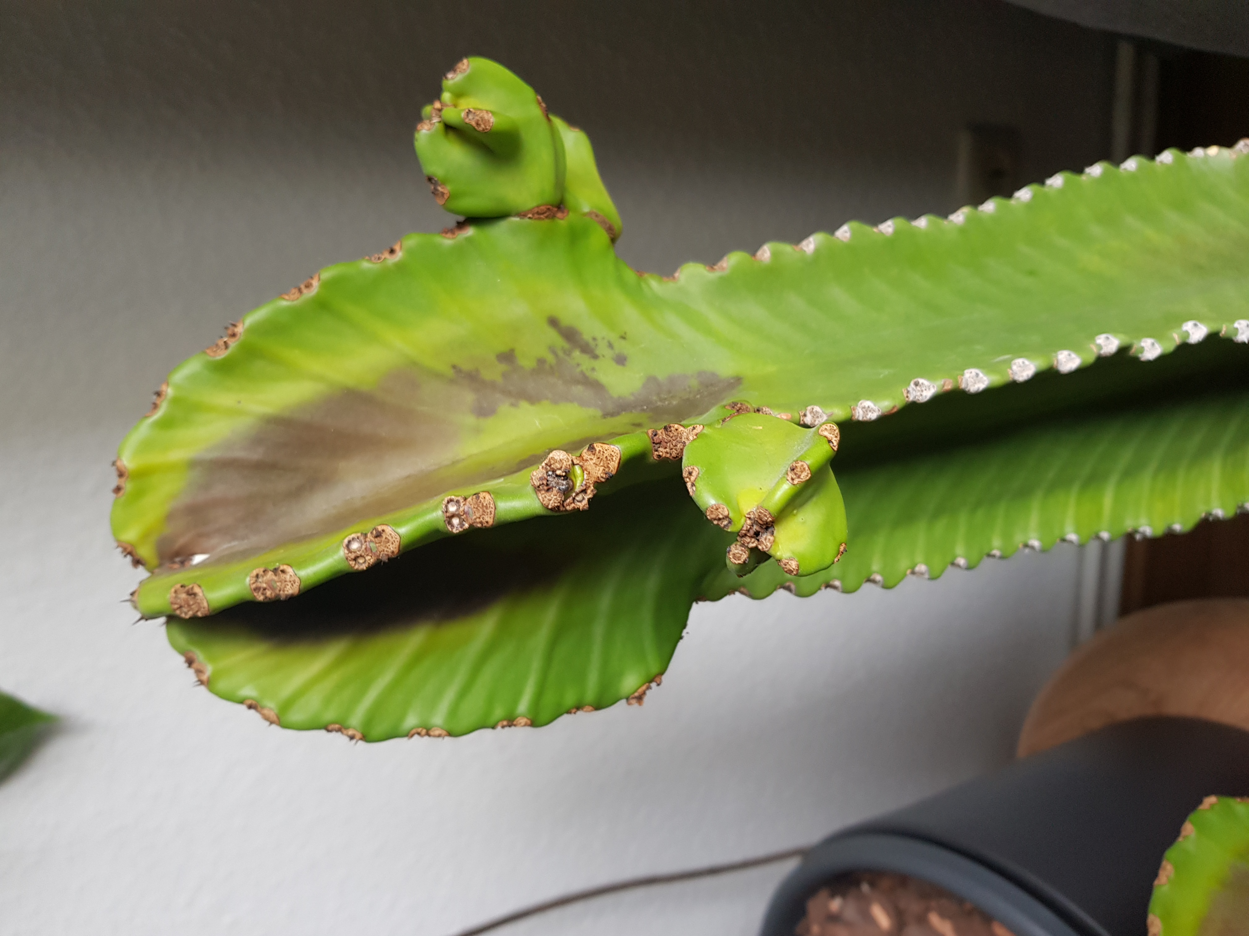 Meine 3 jähriger Euphorbia ingens ist plötzlich innerhalb der letzten 4 Wochen schnell braun geworden. Die verfärbten Stellen waren anfangs fest.