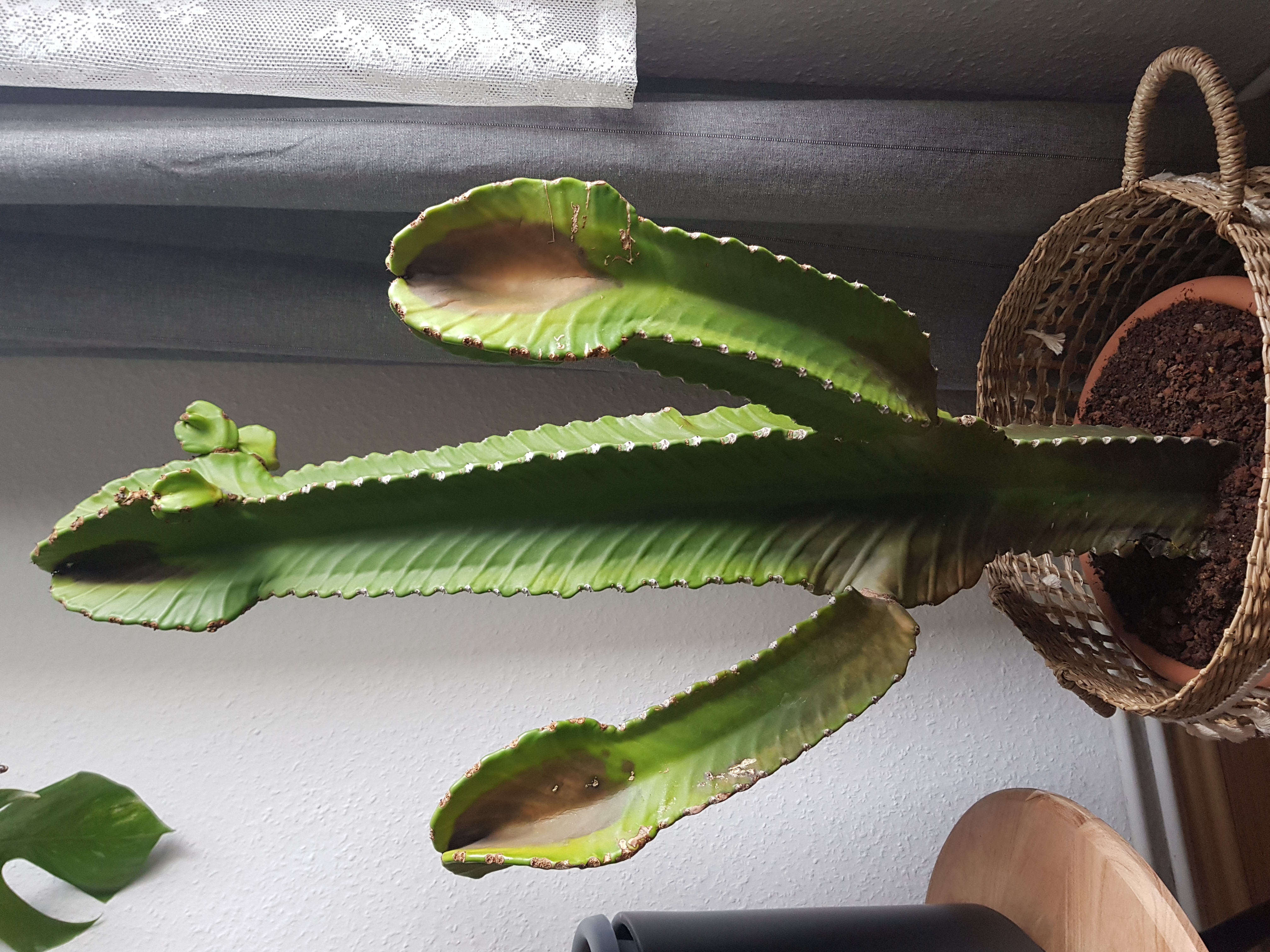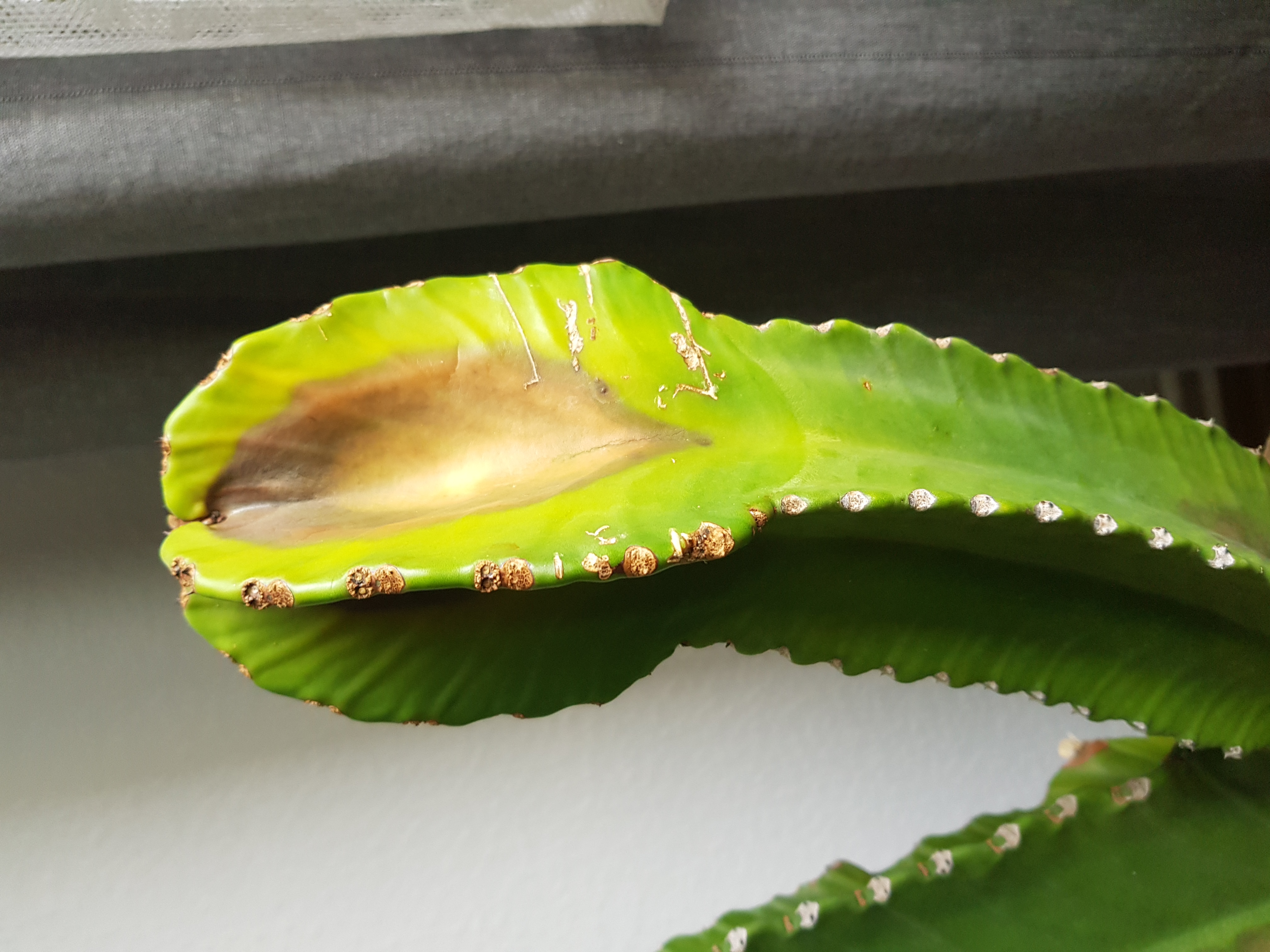 Meine 3 jähriger Euphorbia ingens ist plötzlich innerhalb der letzten 4 Wochen schnell braun geworden. Die verfärbten Stellen waren anfangs fest.